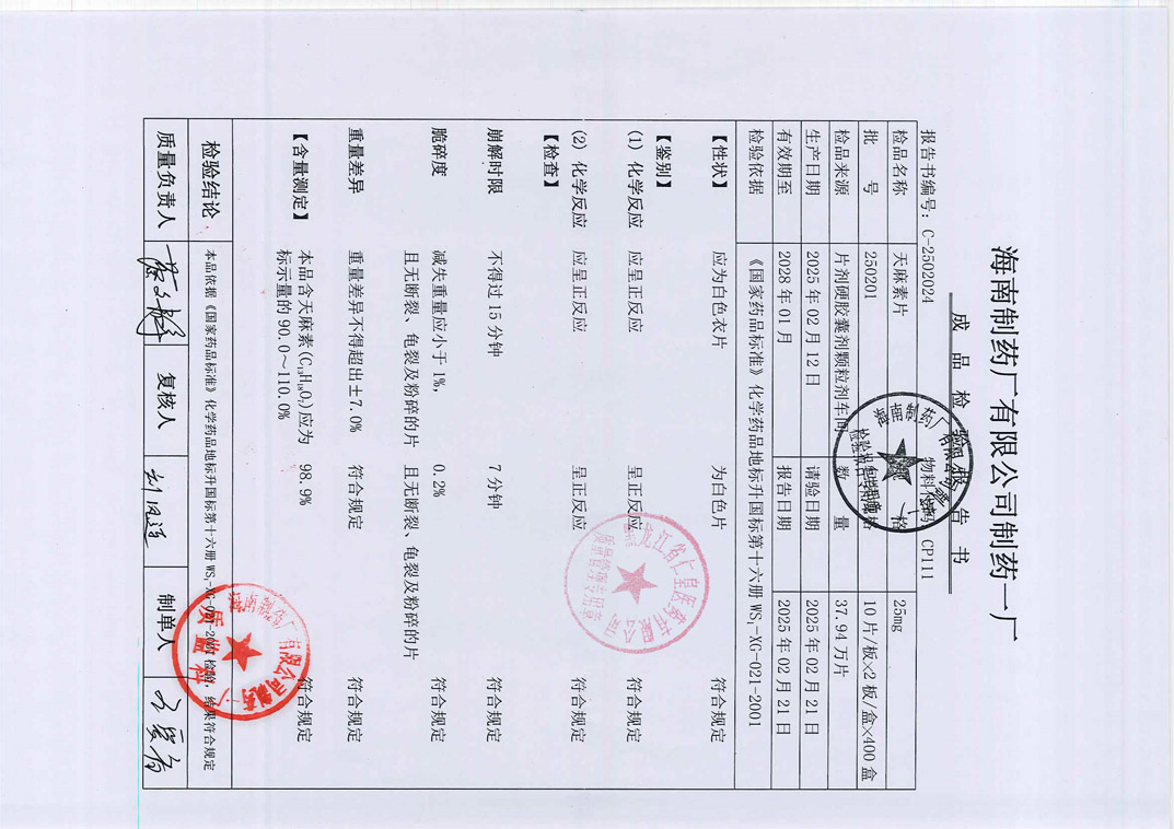 天麻素片250201