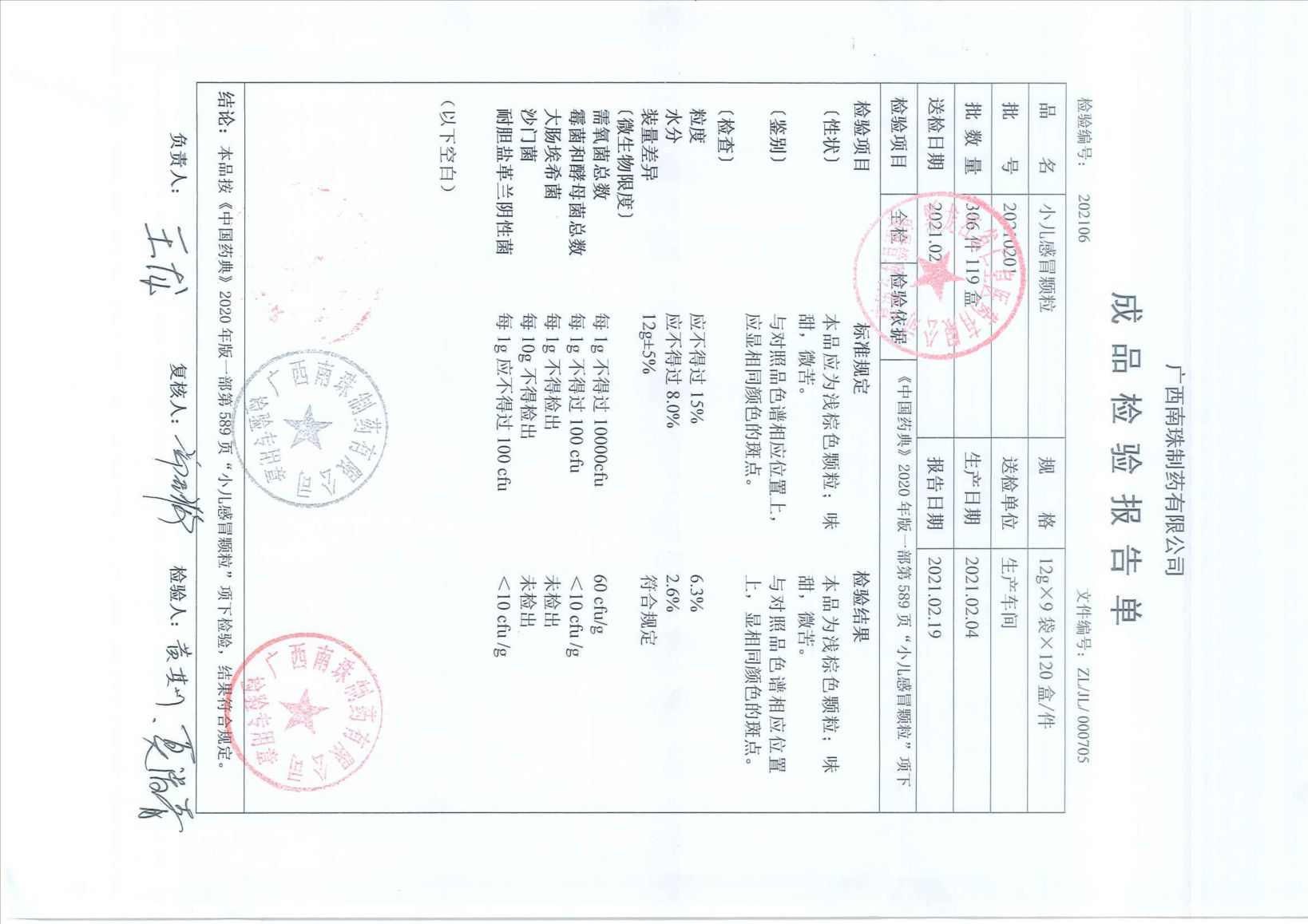 小儿感冒颗粒2021