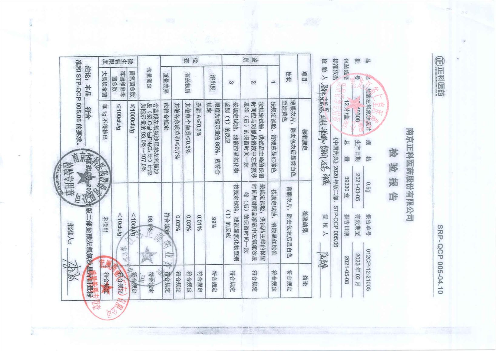 盐酸左氧氟沙星片20