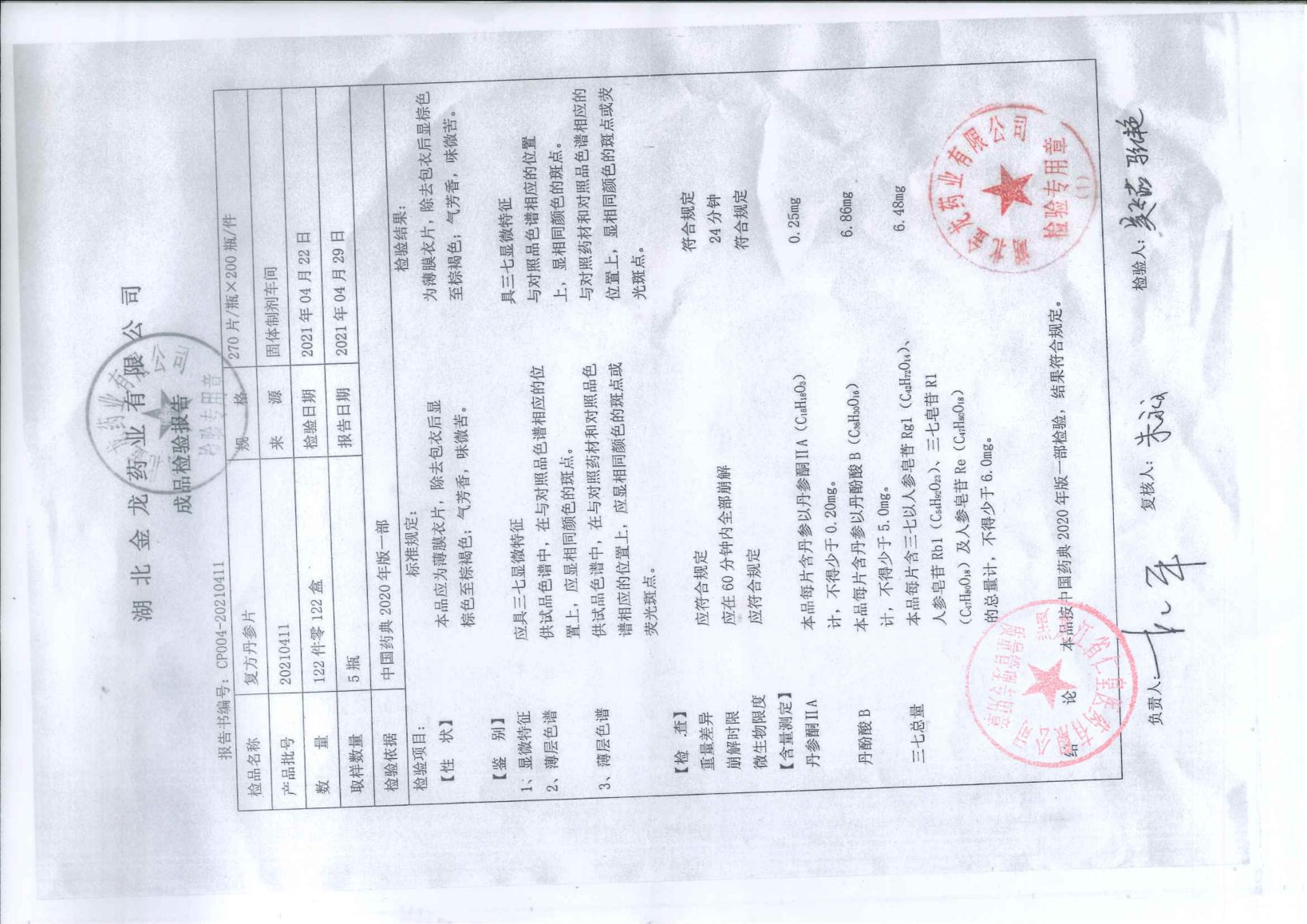 复方丹参片20210