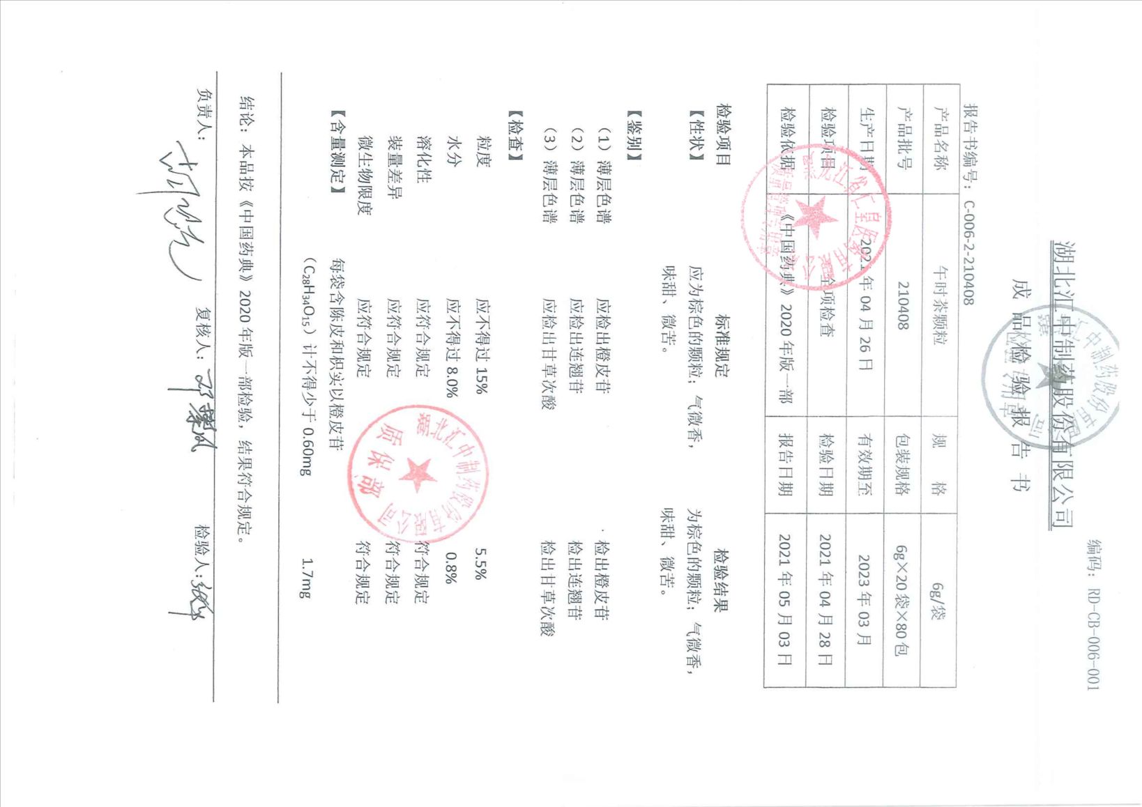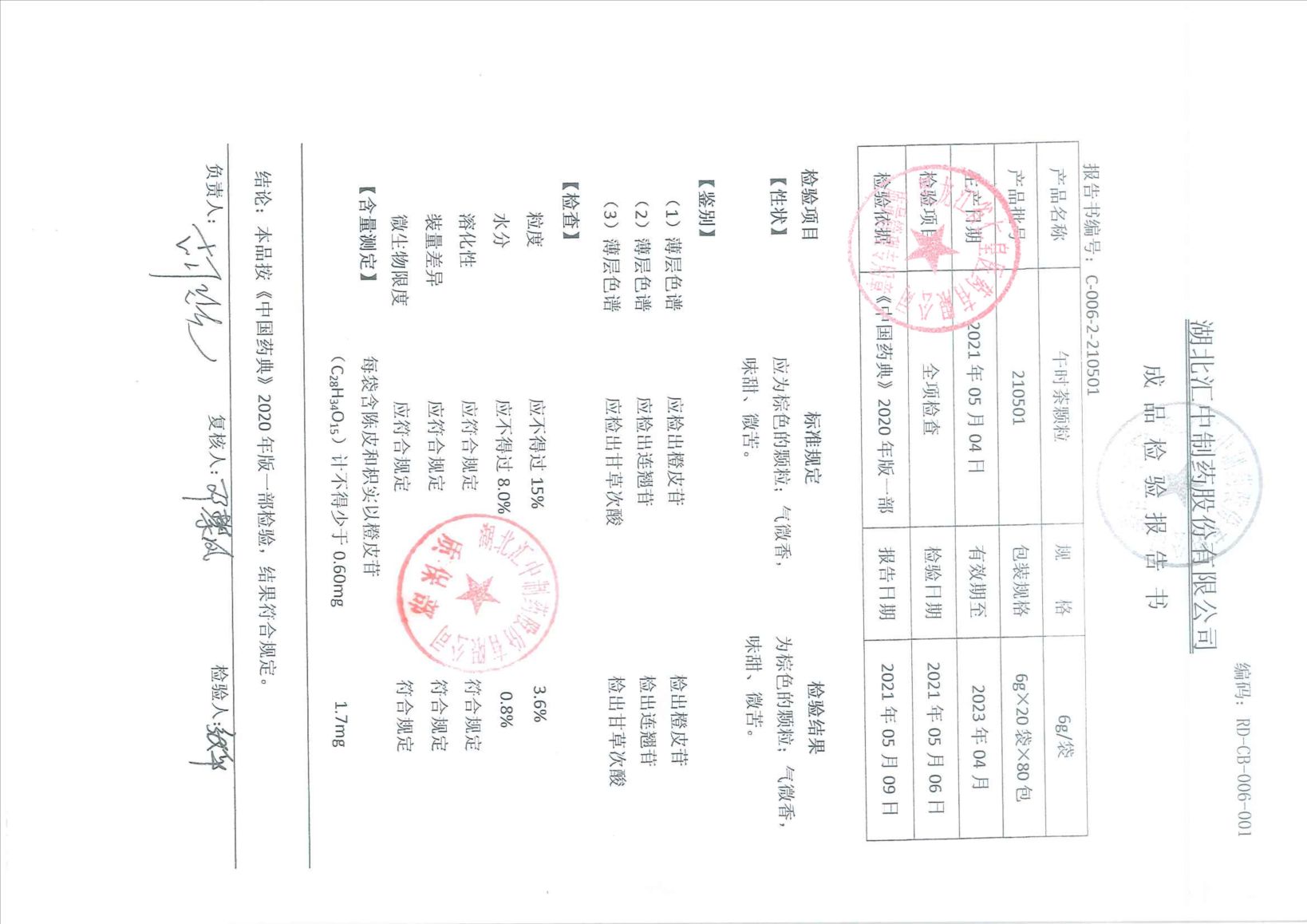 午时茶颗粒21040