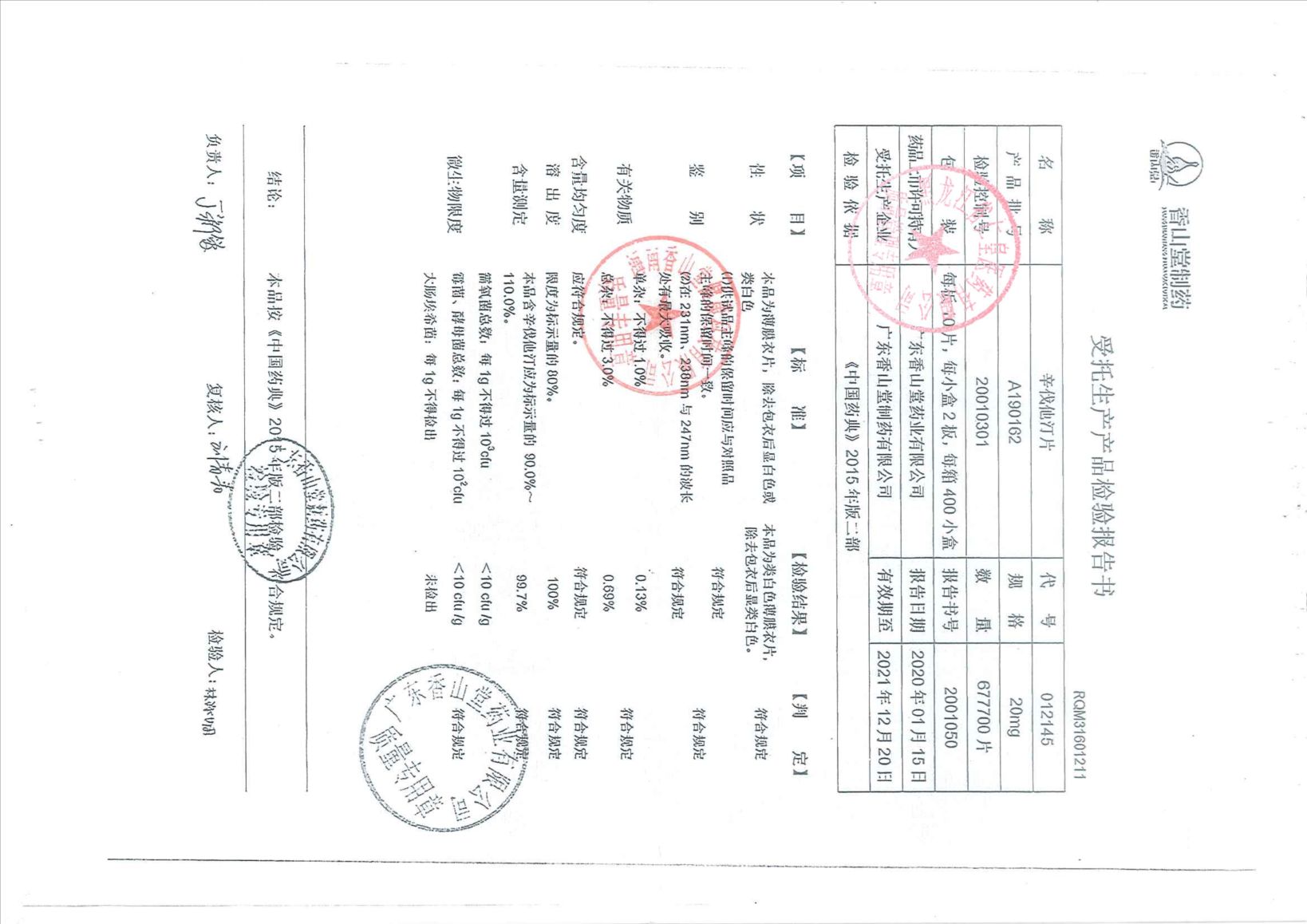 辛伐他汀片A1901