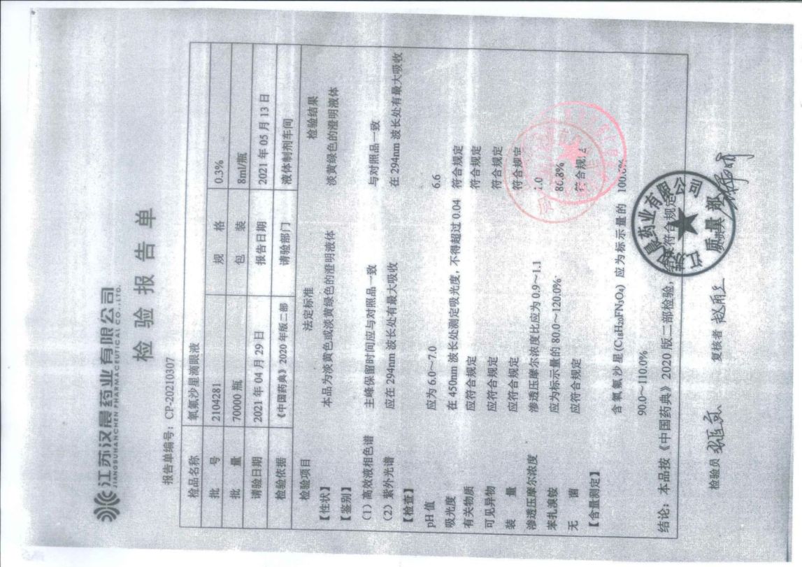 氧氟沙星滴眼液210