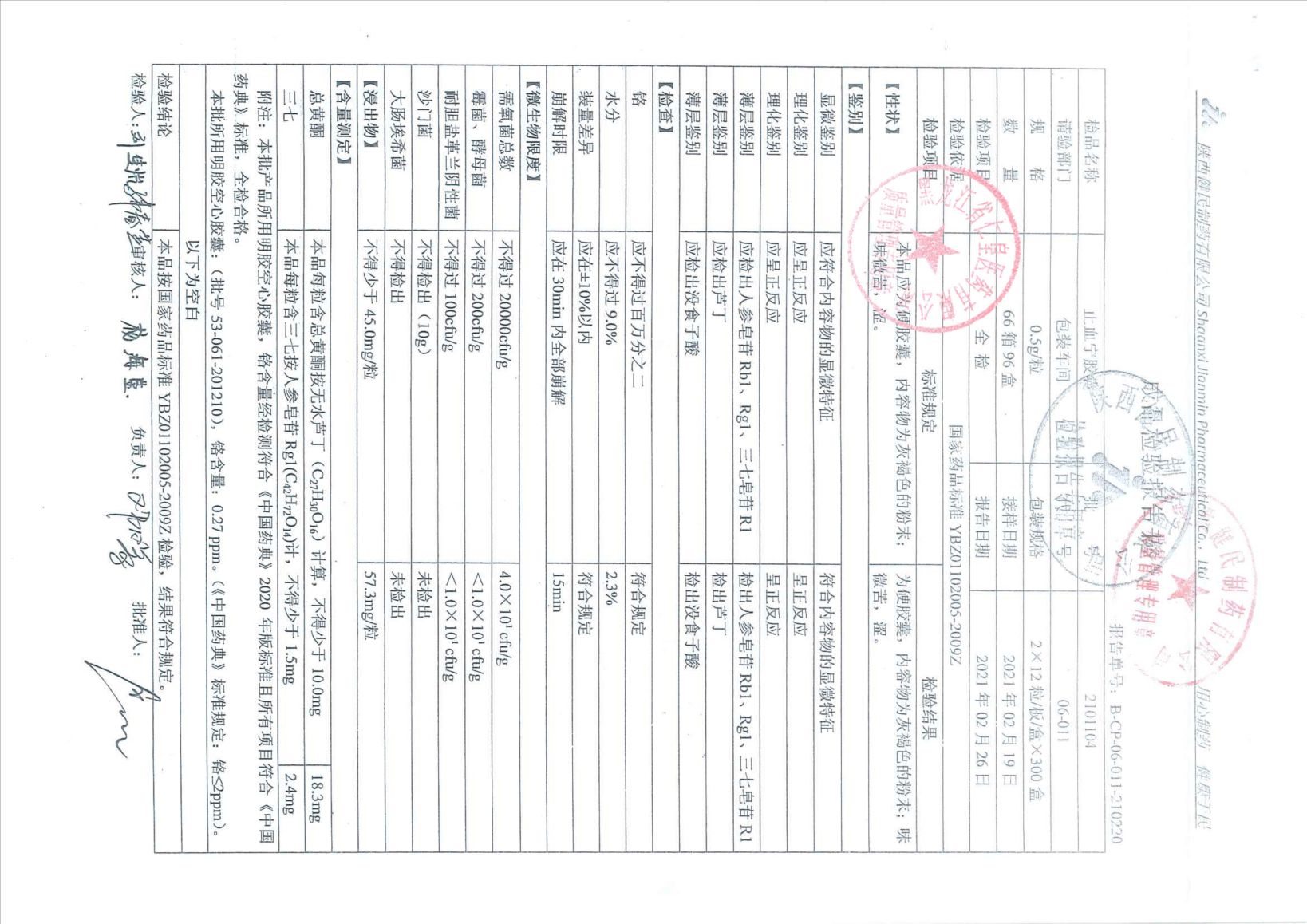 止血宁胶囊21011