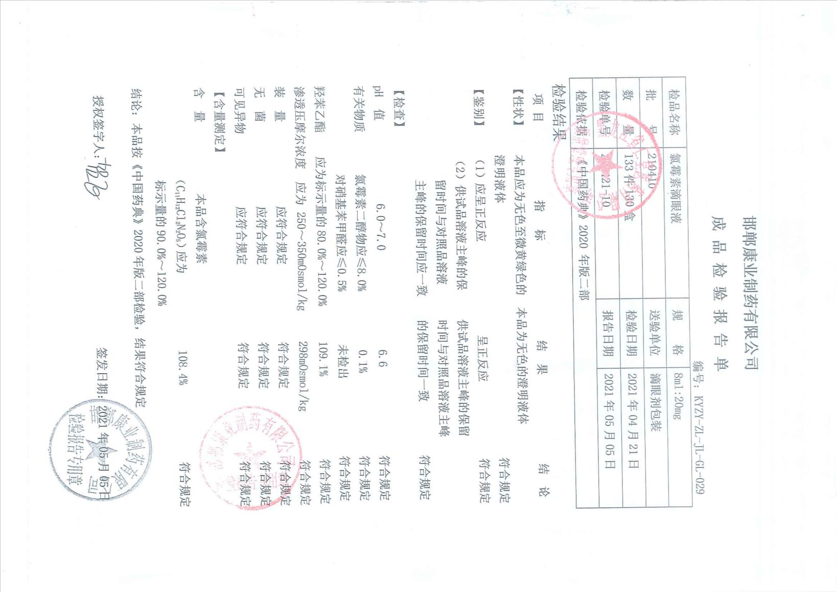 氯霉素滴眼液2104