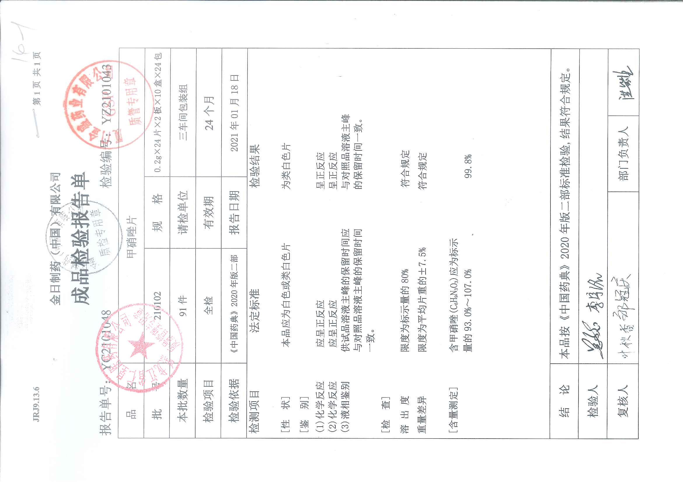 甲硝唑片210102