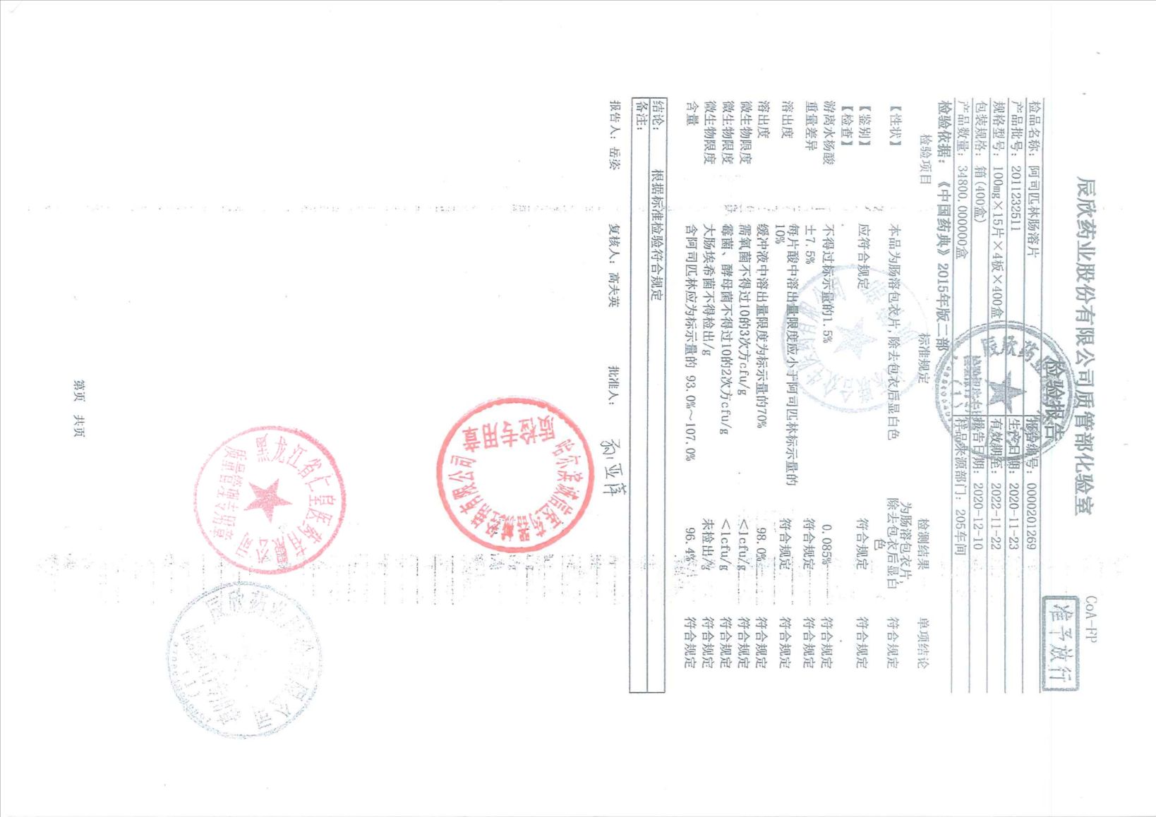 阿司匹林肠溶片201