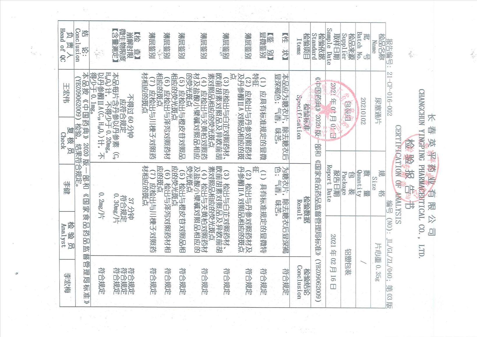 尿塞通片202101