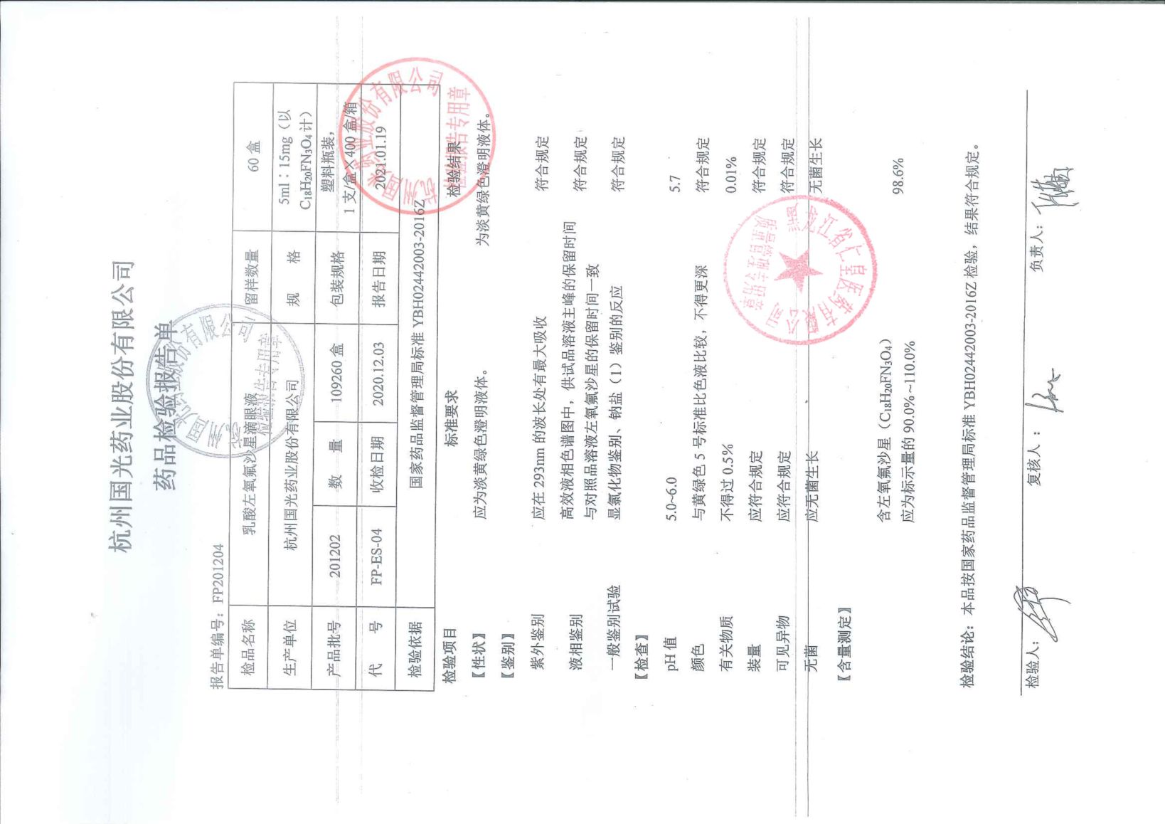 乳酸左氧氟沙星滴眼液