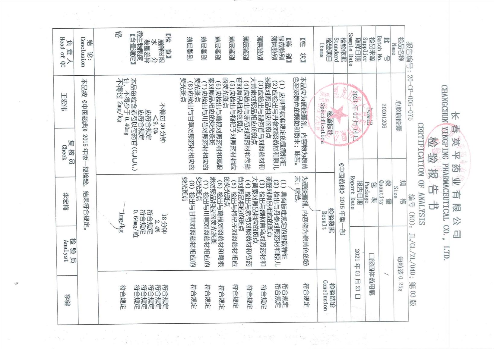 心脑康胶囊20201