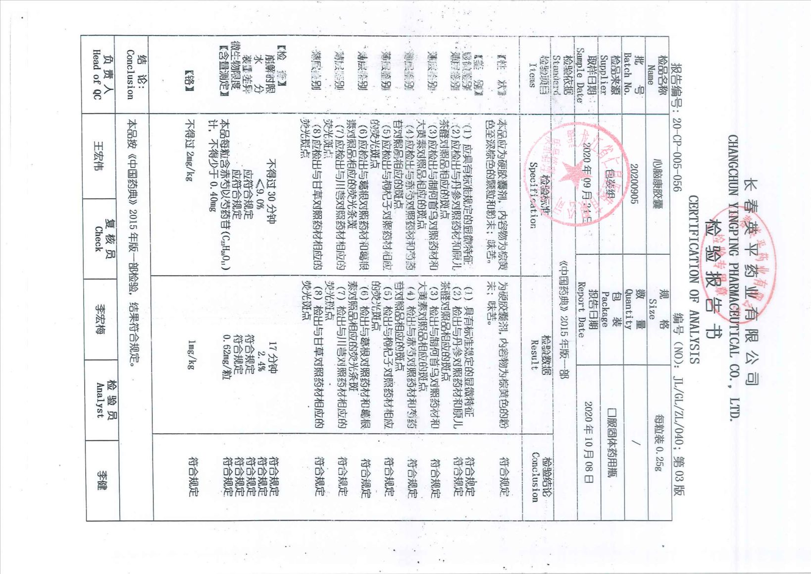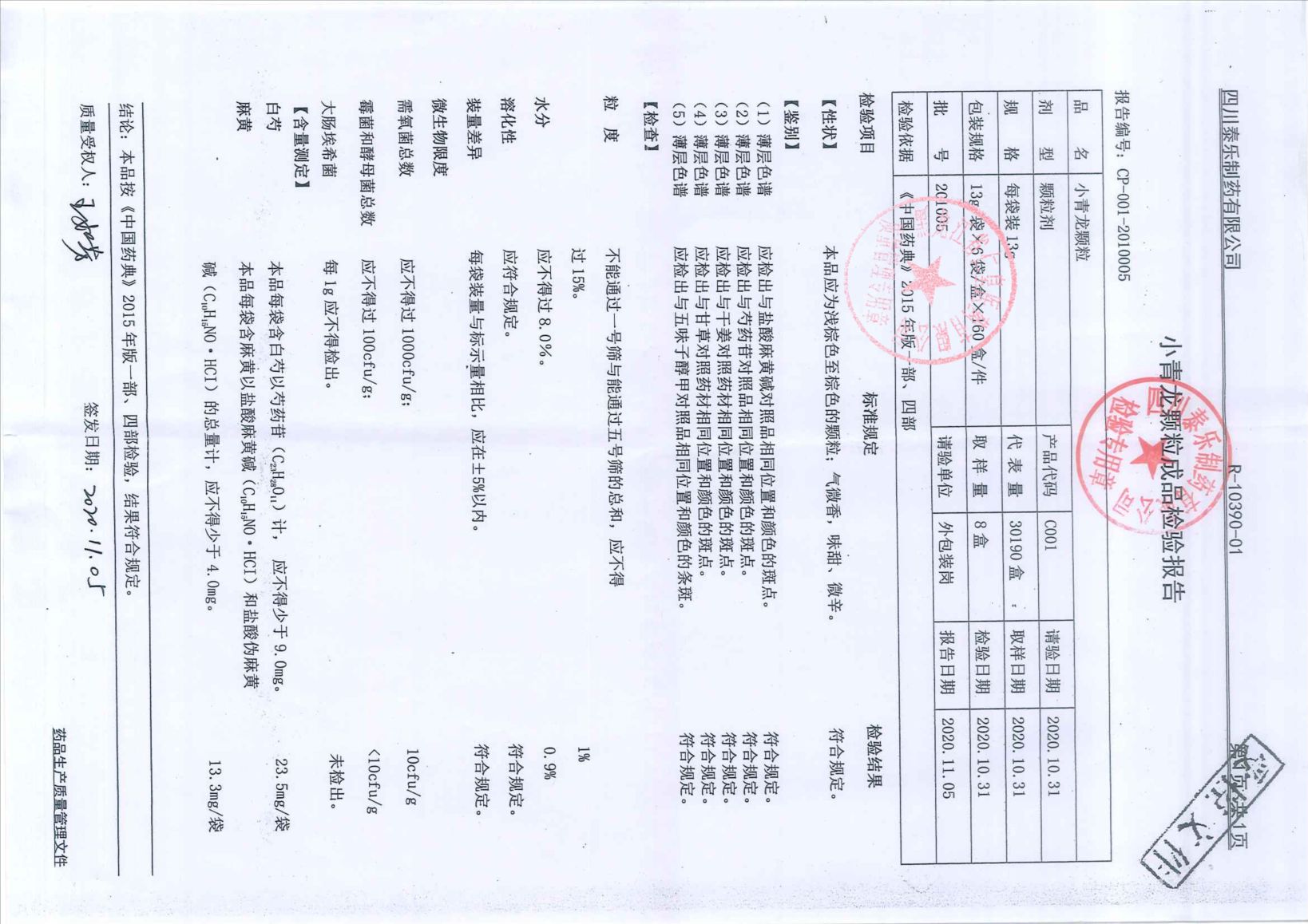 小青龙颗粒20100