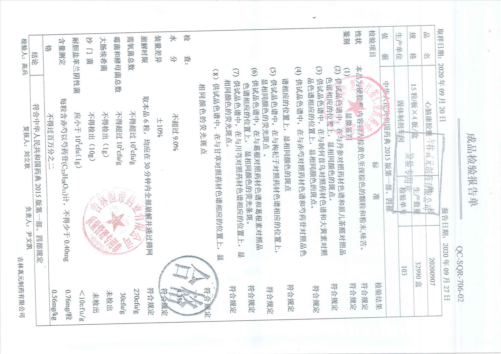 心脑康胶囊20200