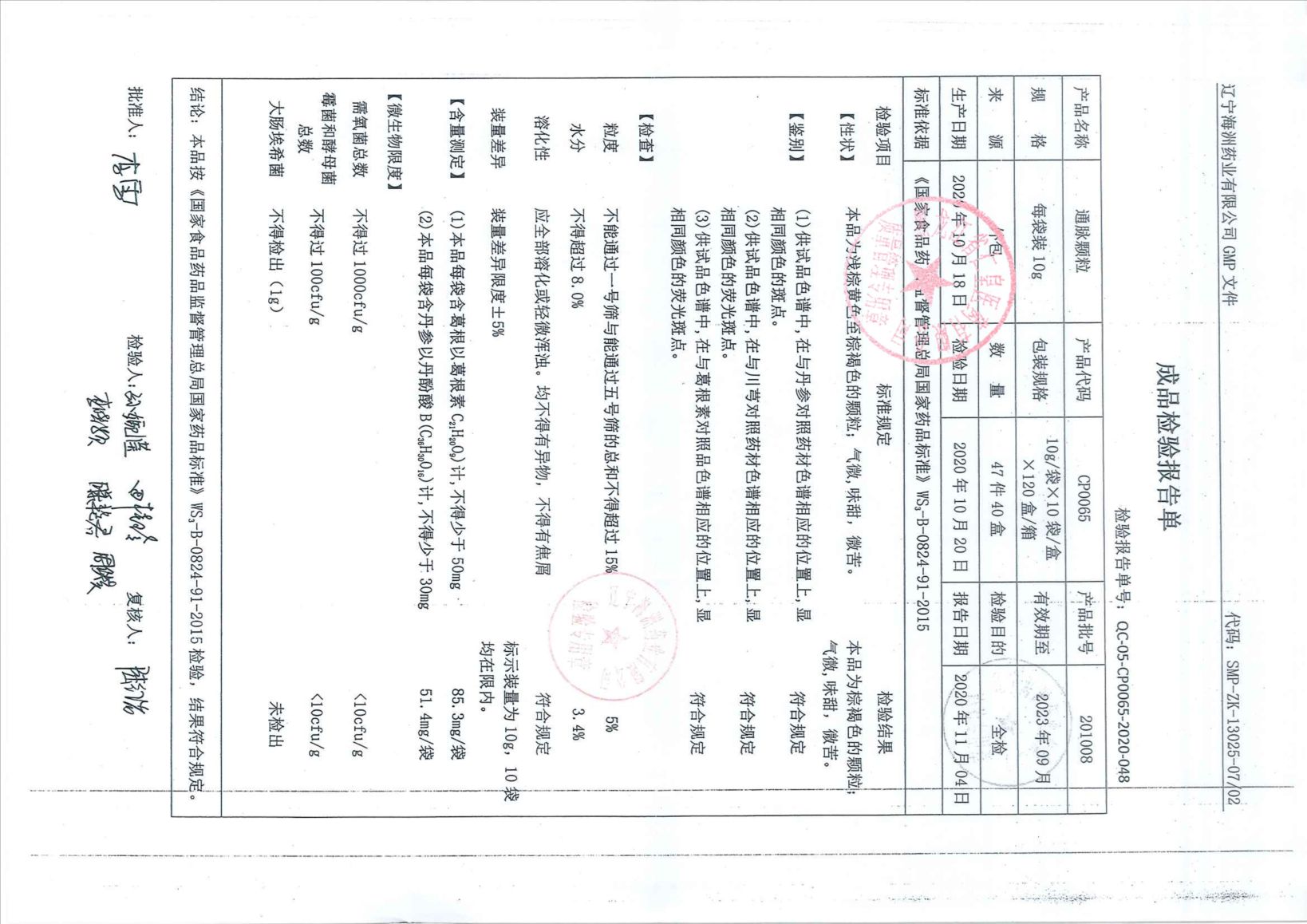 通脉颗粒201008