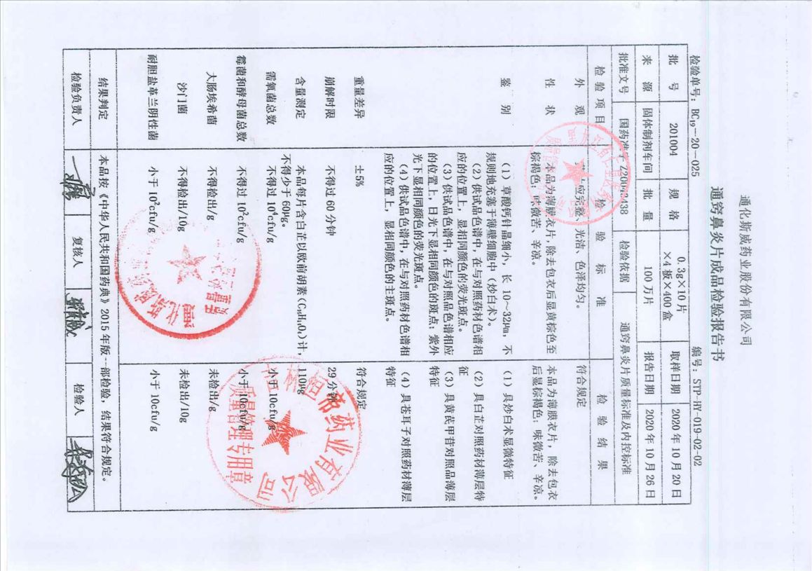 通窍鼻炎片20100
