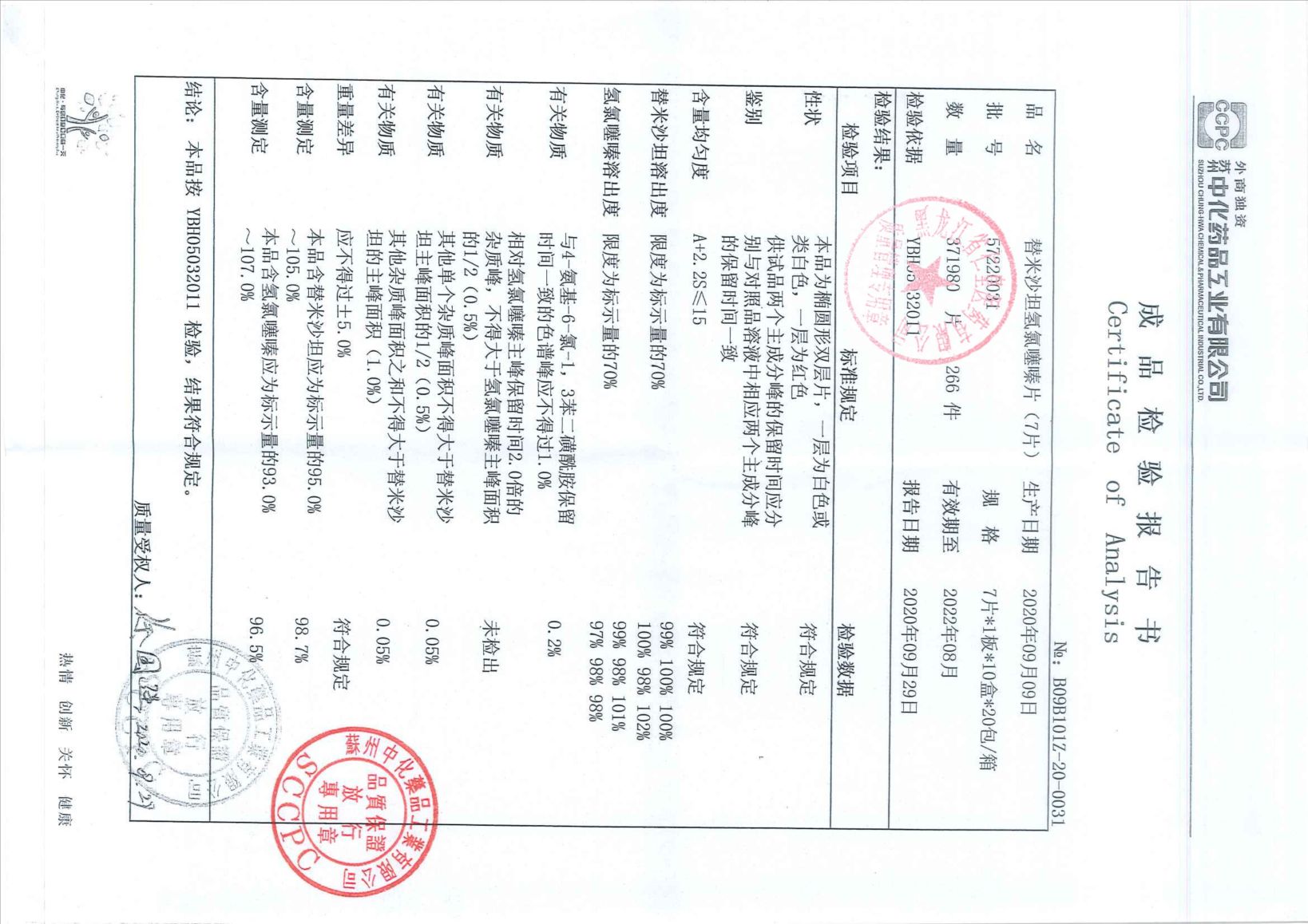 替米沙坦片20090
