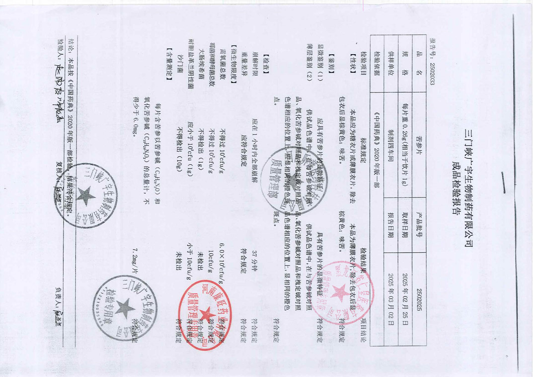苦参片2502025