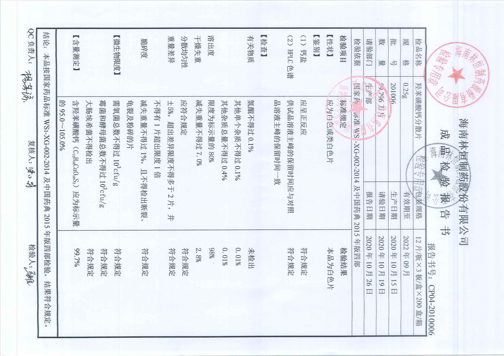 羟苯磺酸钙分散片20