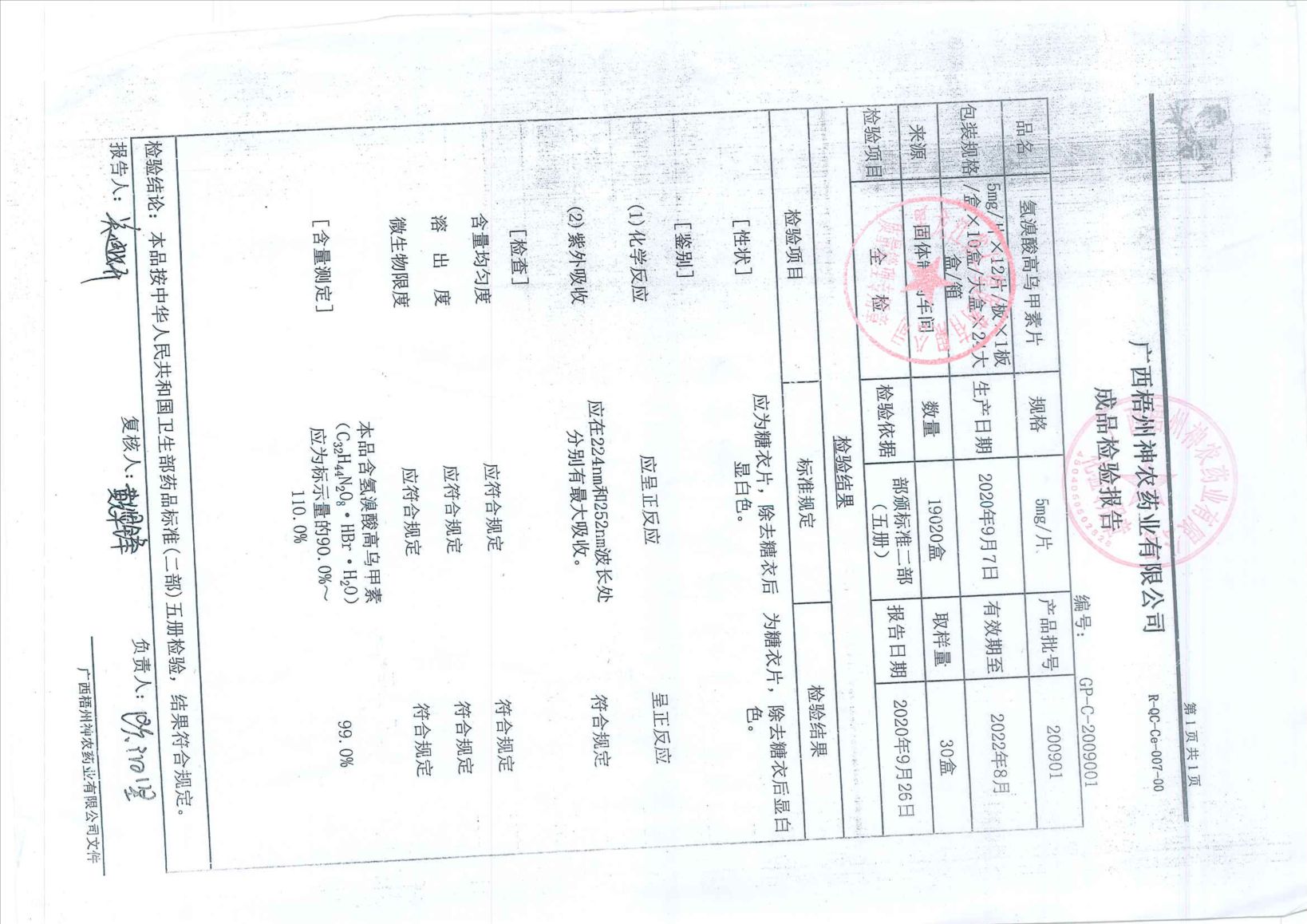 氢溴酸高乌甲素片20