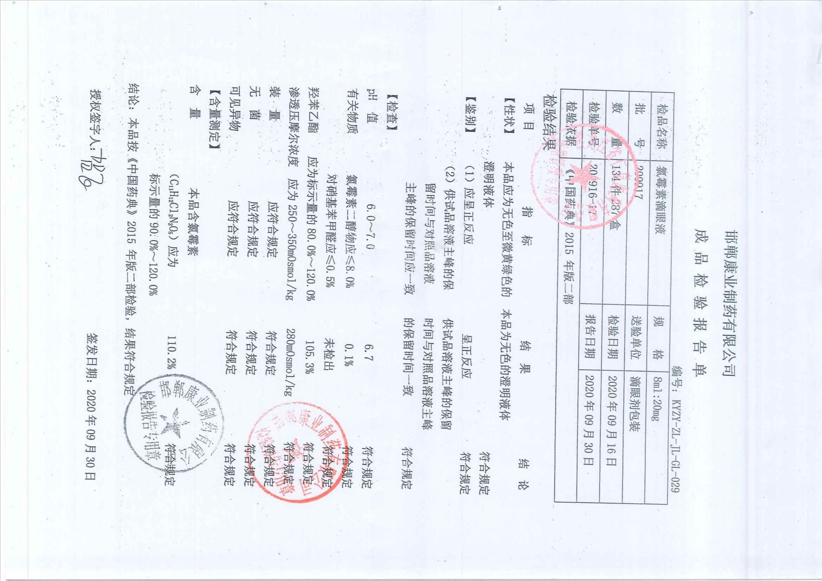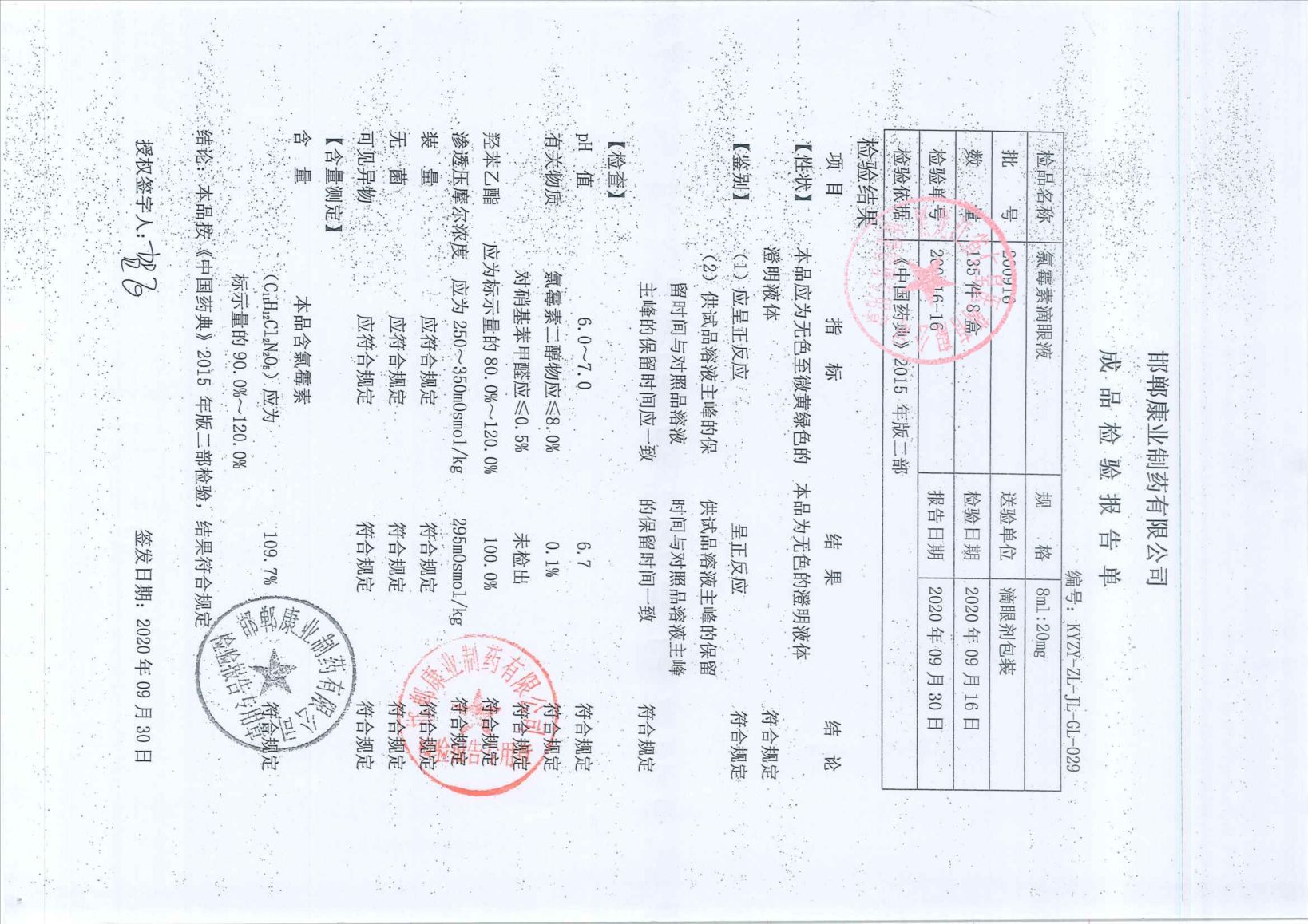 氯霉素滴眼液2009