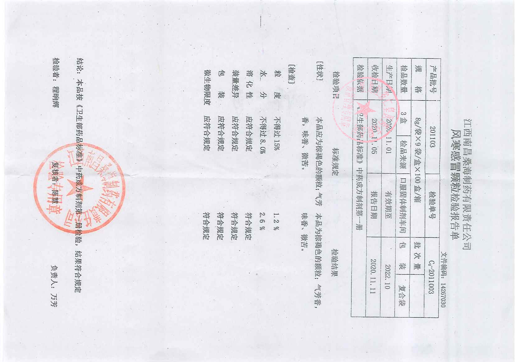 风寒感冒颗粒2011