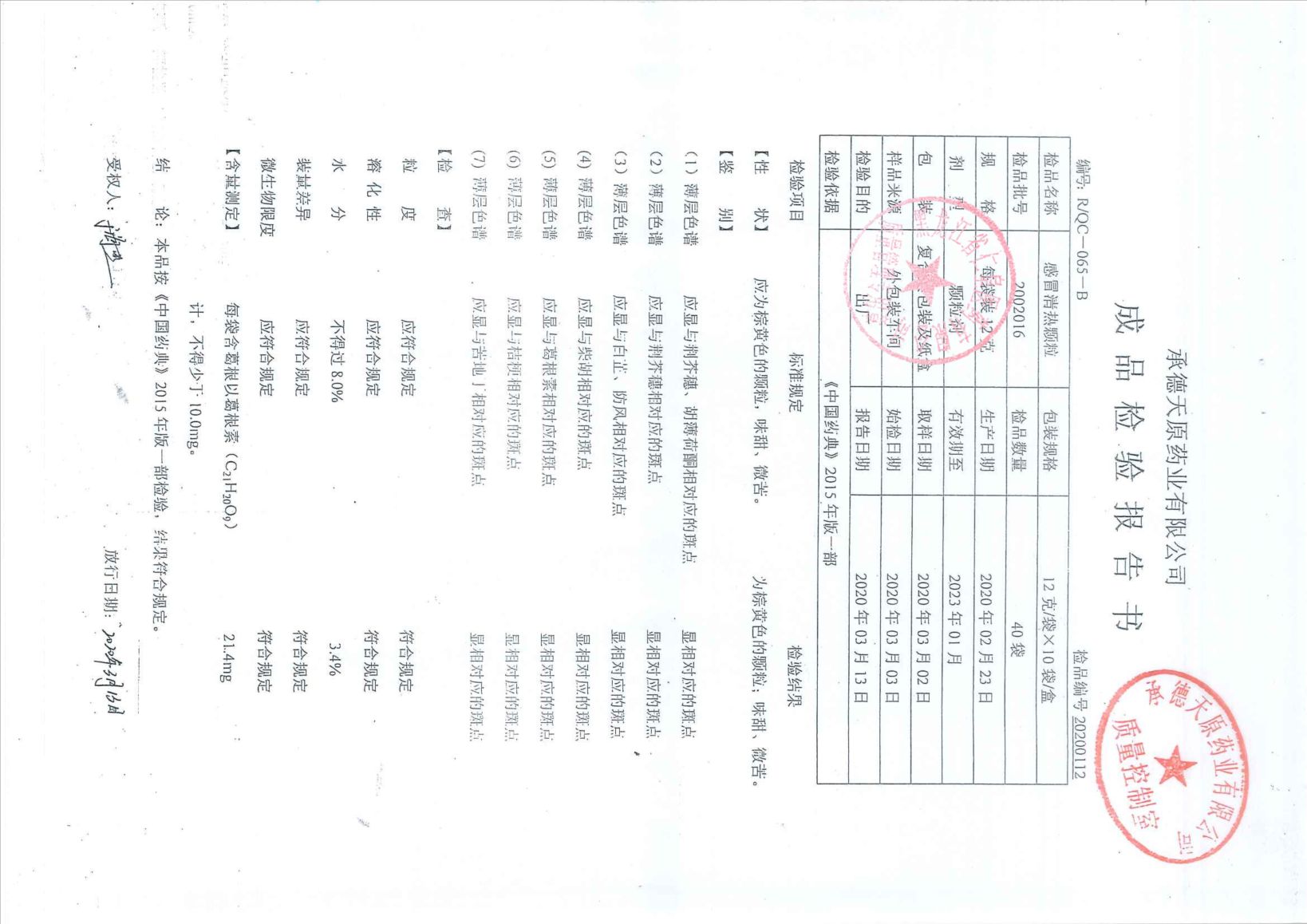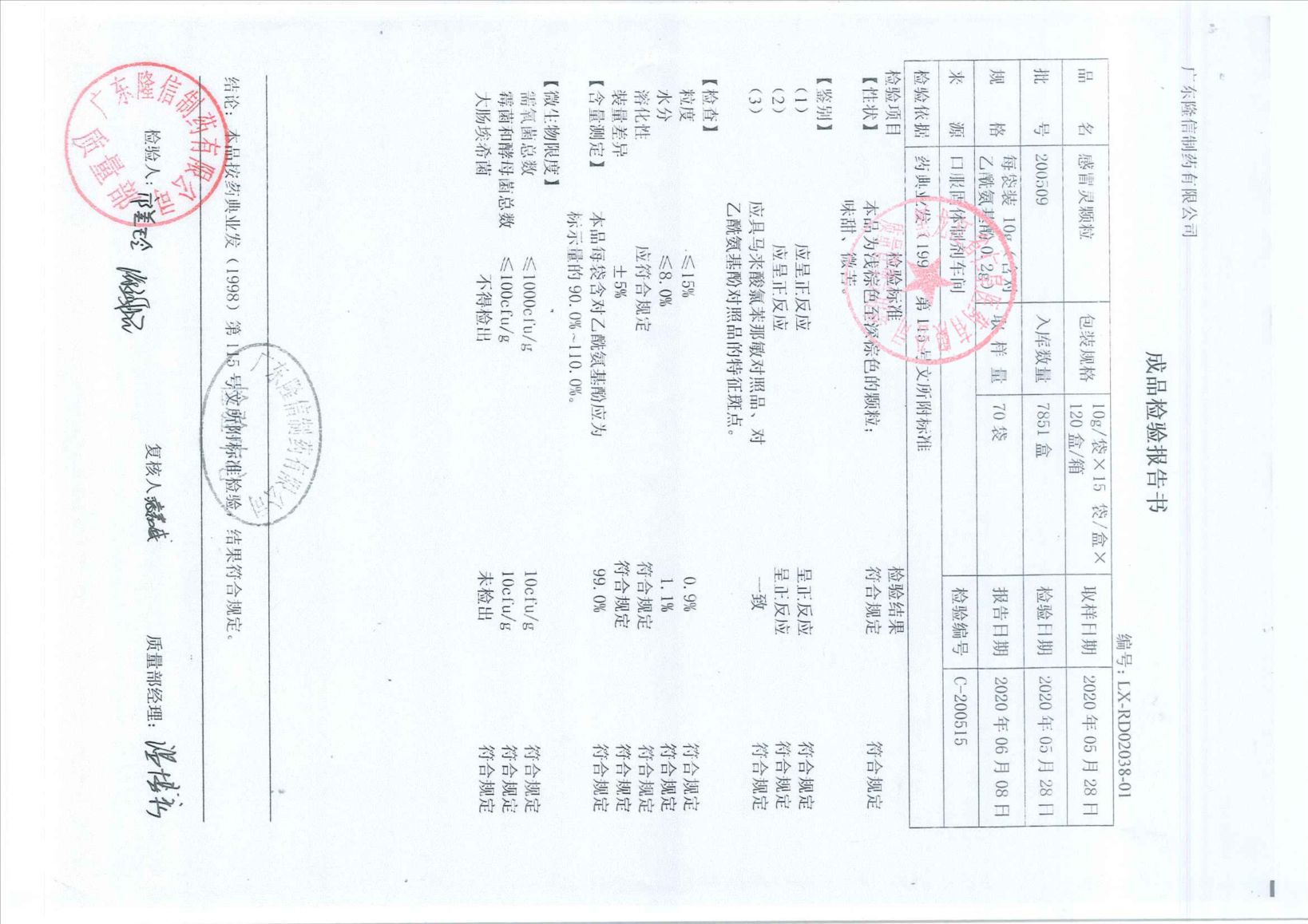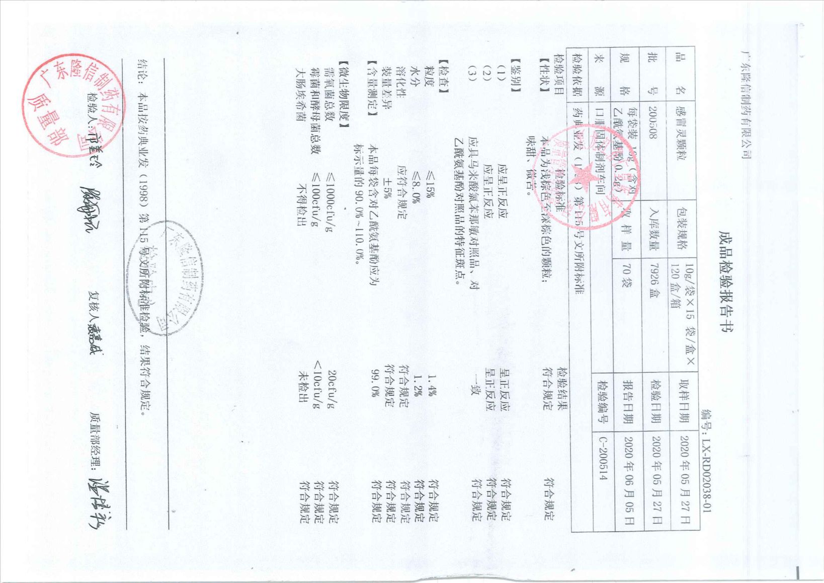 感冒灵颗粒20050