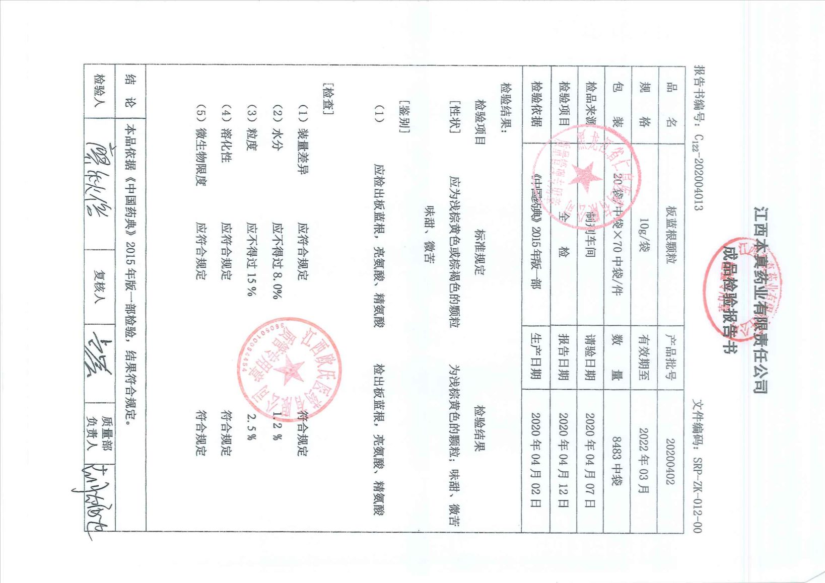 板蓝根颗粒20200