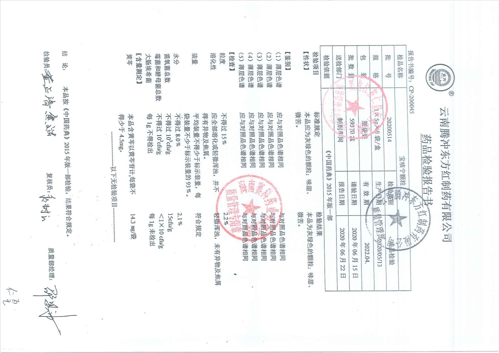 宝咳宁颗粒20200