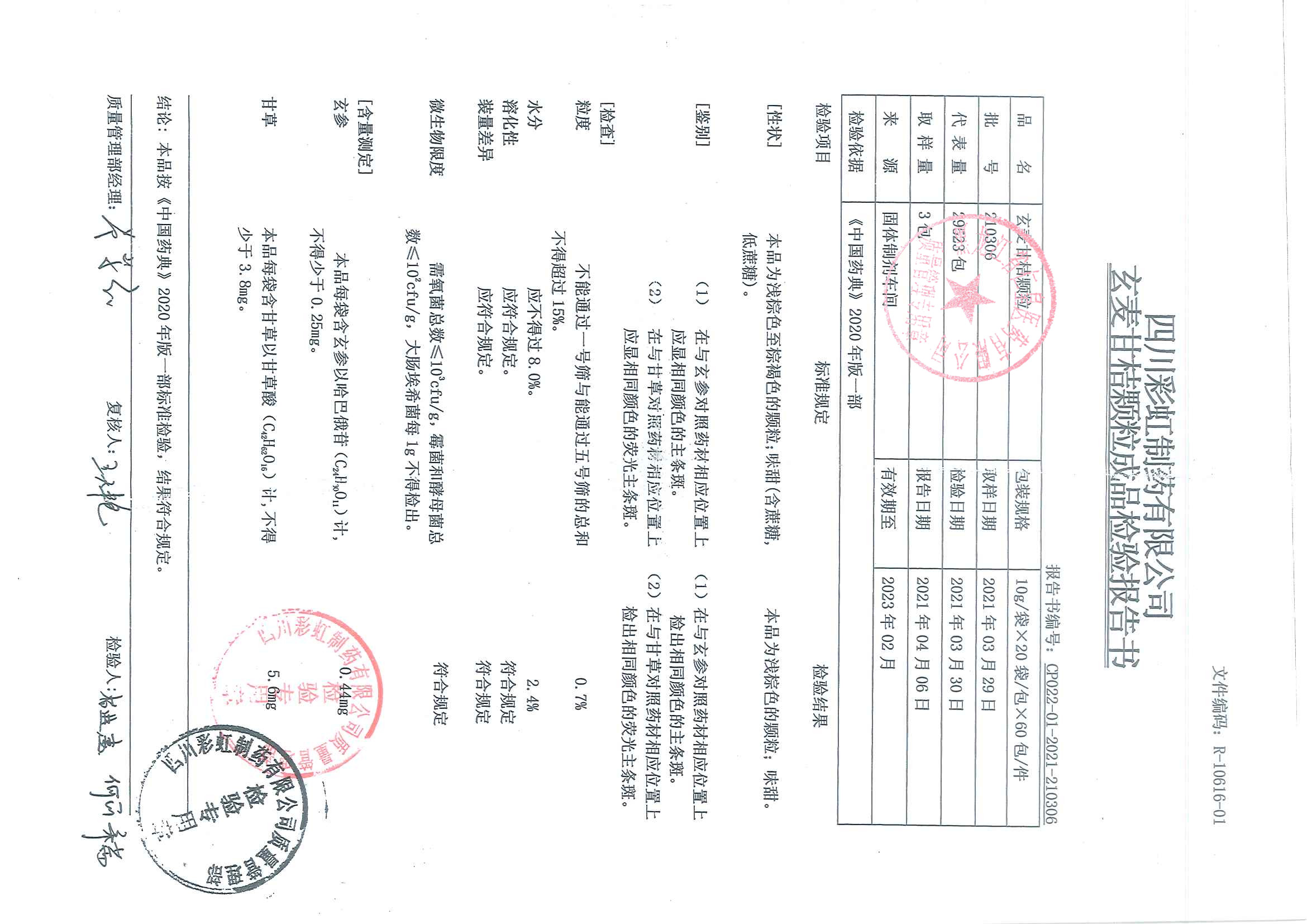 玄麦甘桔颗粒2103