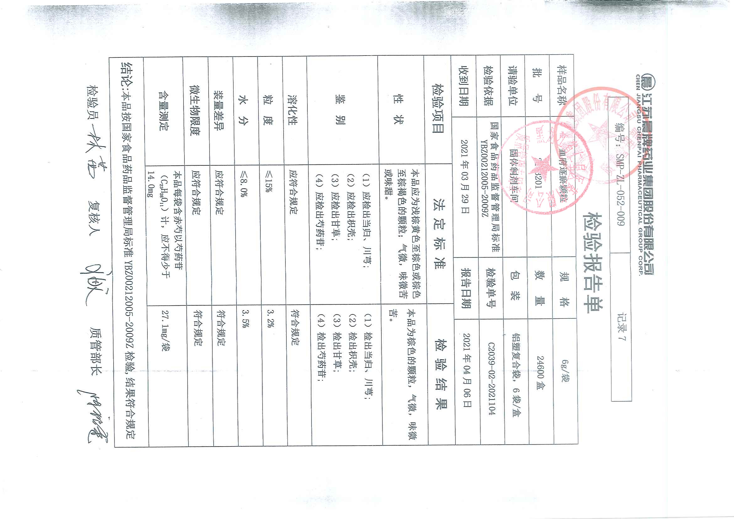 血府逐瘀颗粒2103