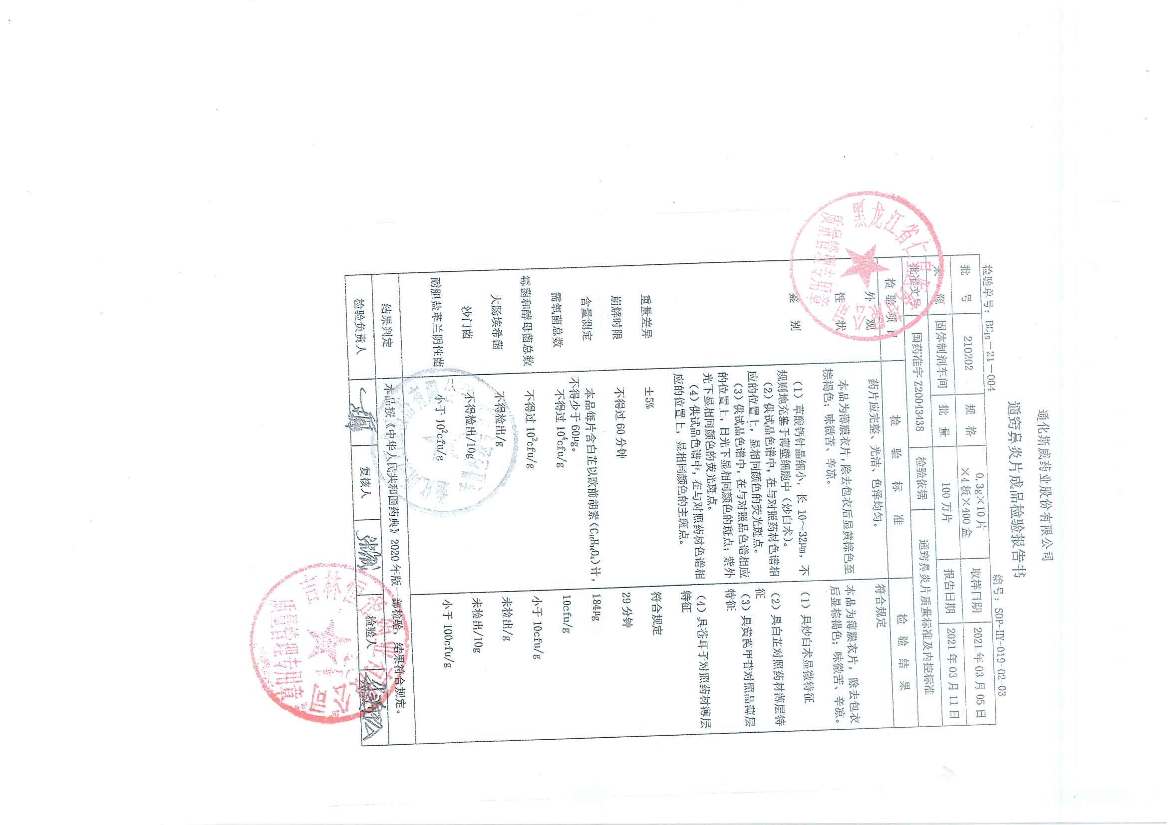通窍鼻炎片21020