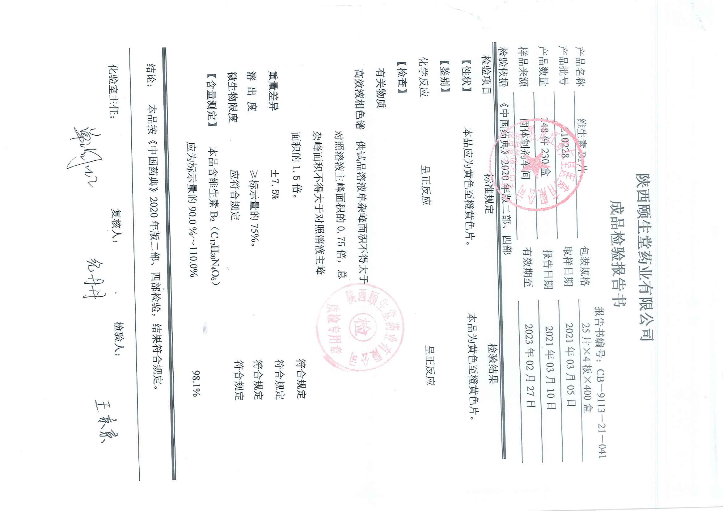 维生素B2片2102