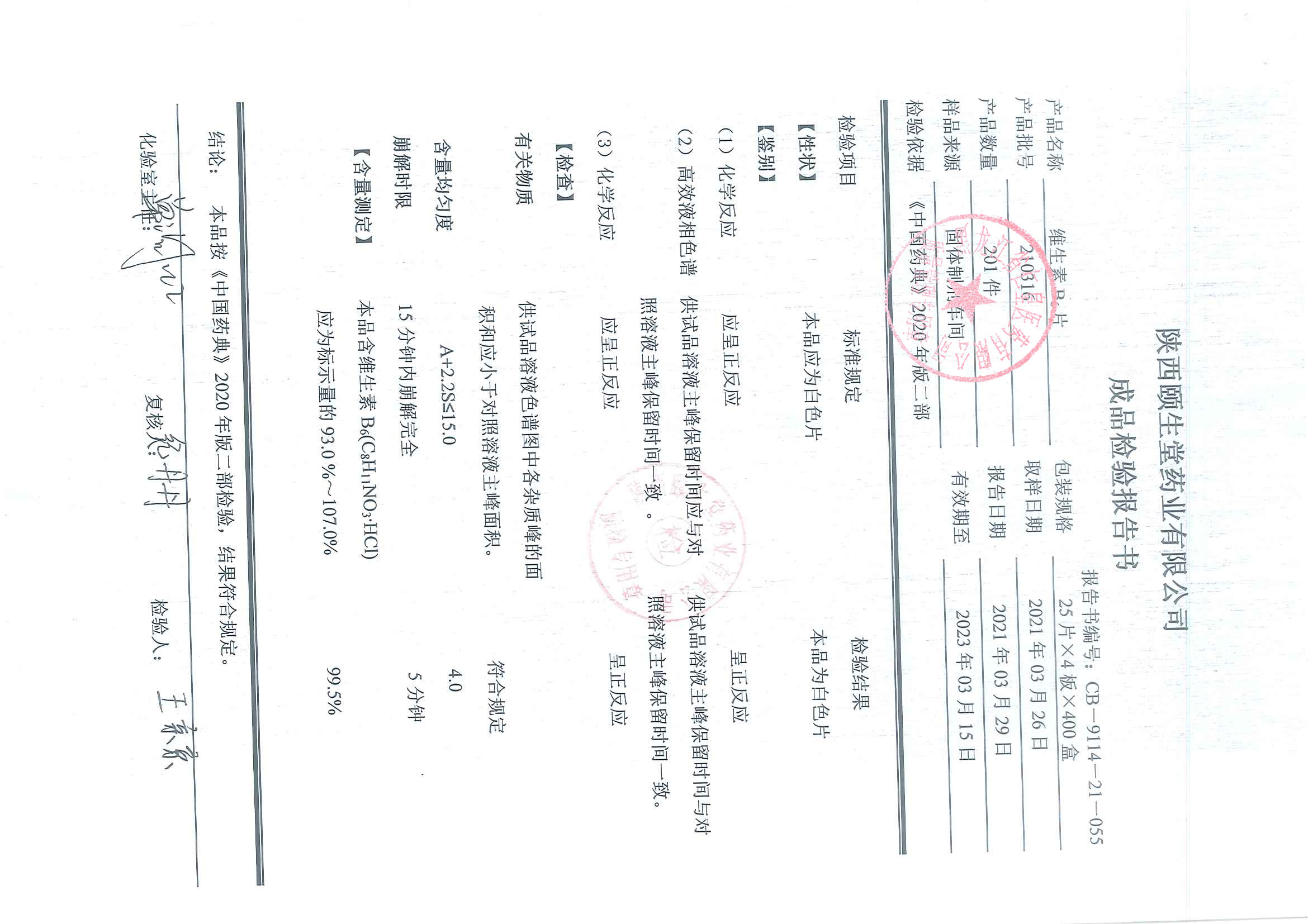 维生素B6片2103