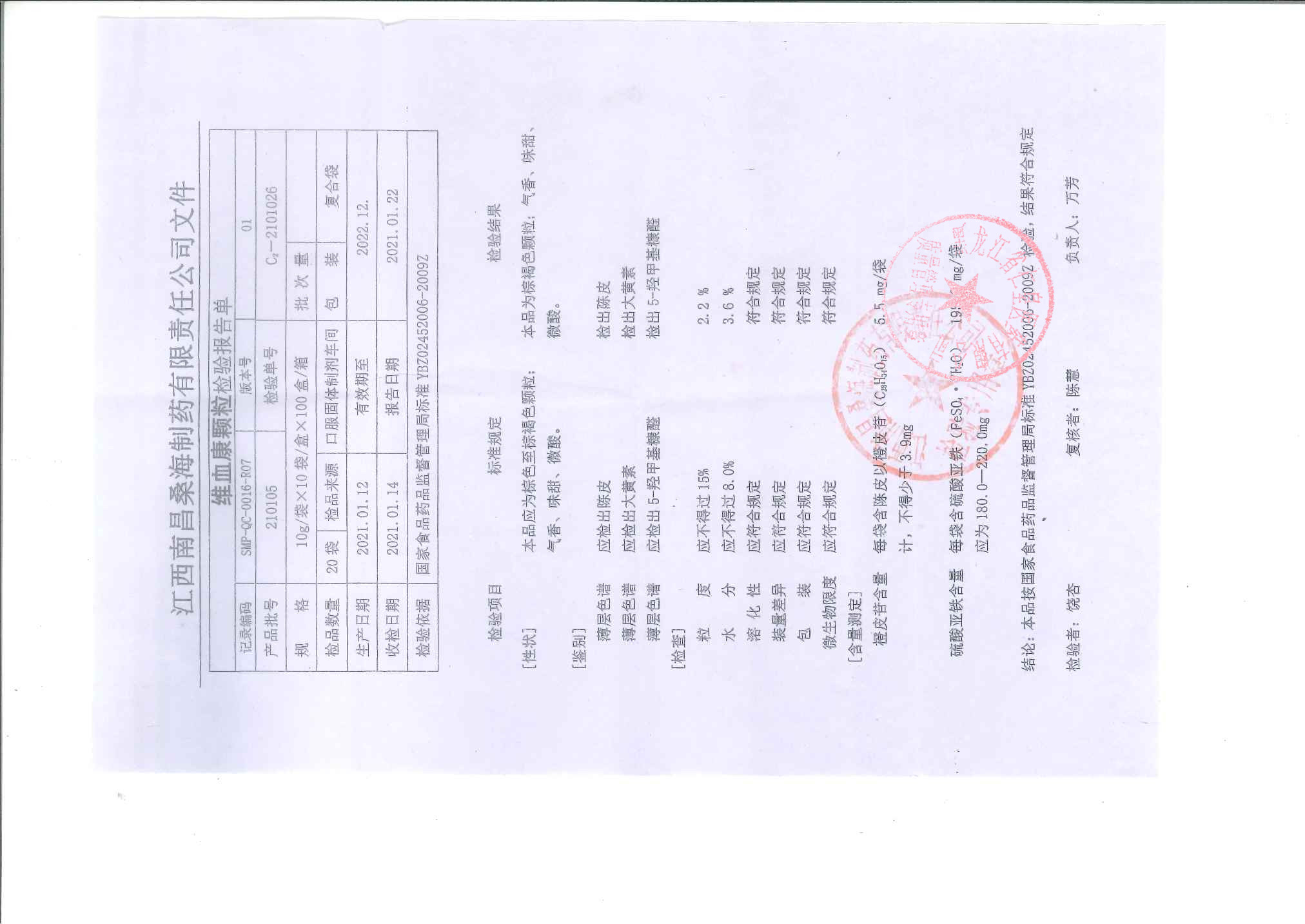 维血康颗粒21010