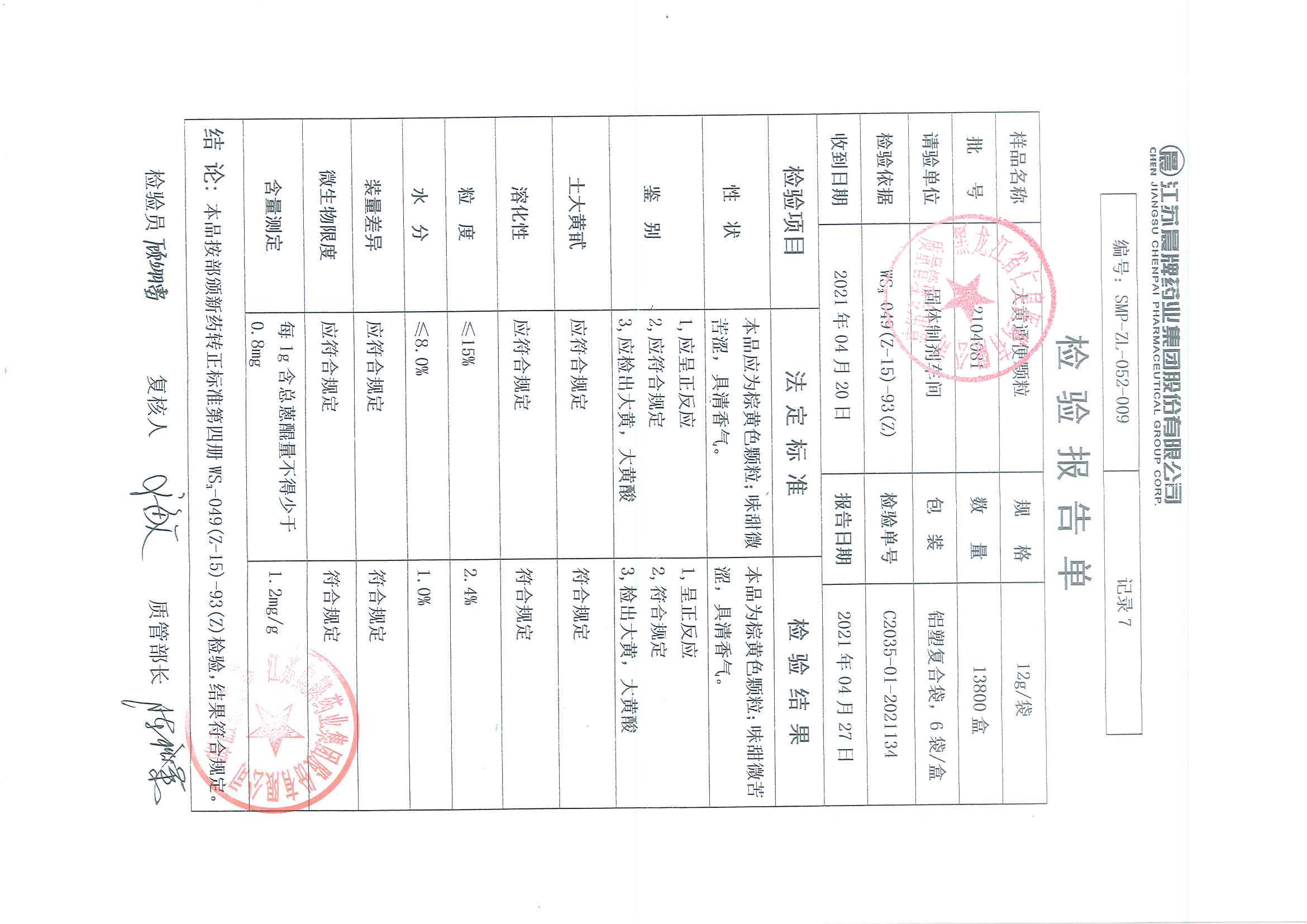 大黄通便颗粒2104