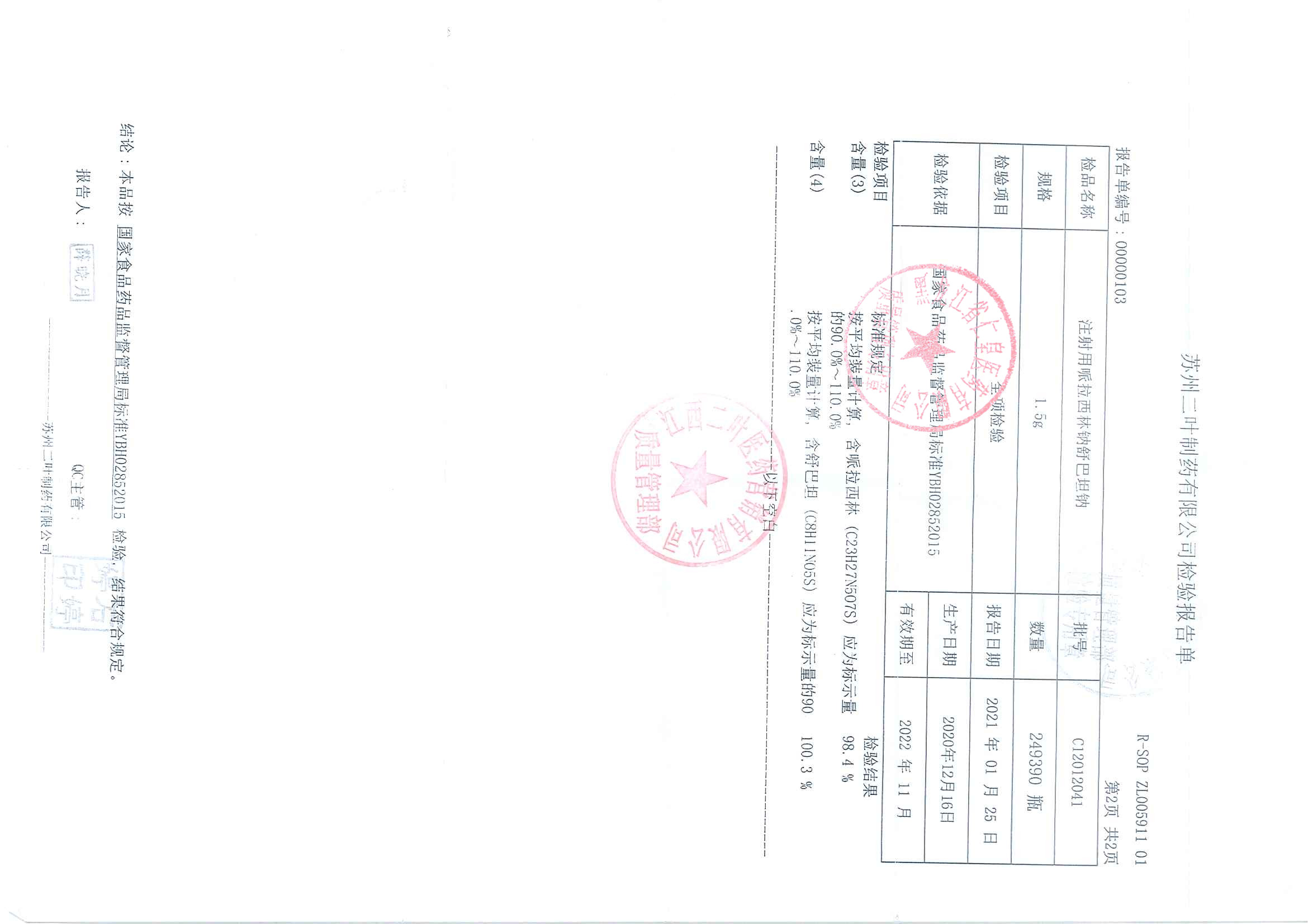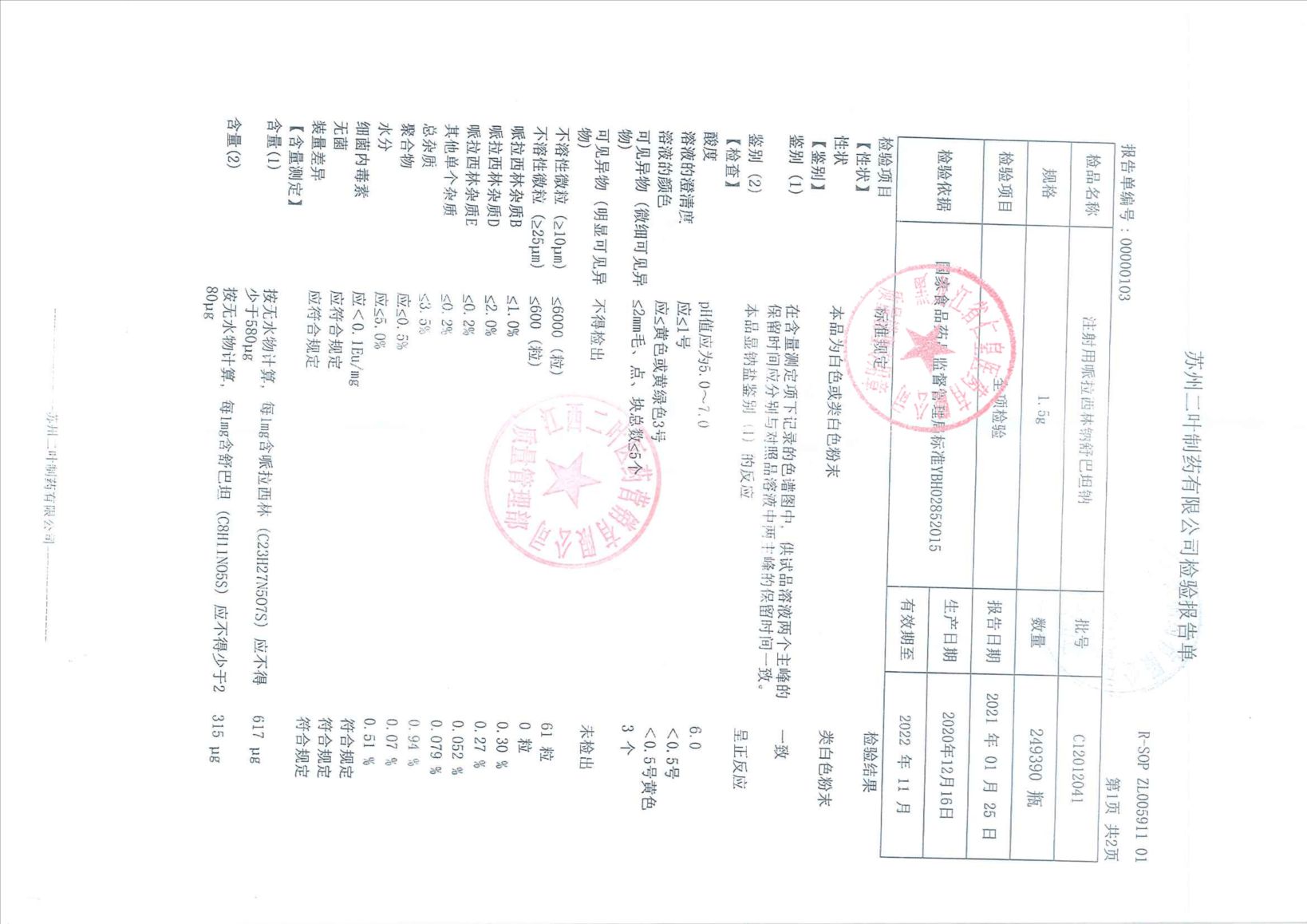 注射用哌拉西林钠舒巴