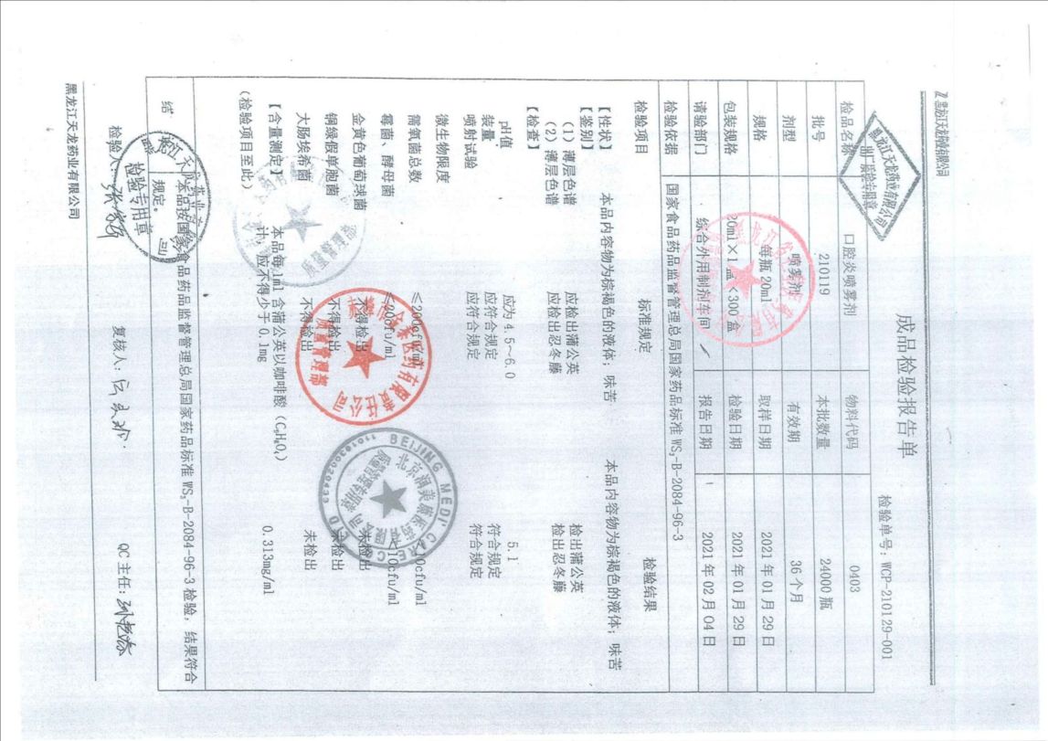口腔炎喷雾剂2101