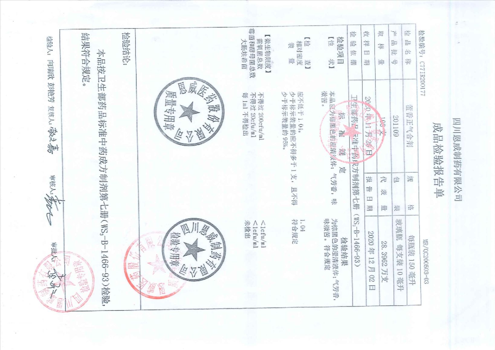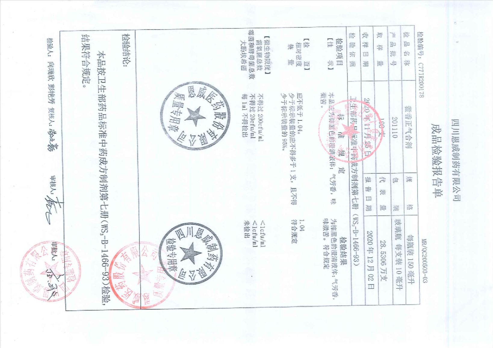藿香正气合剂2011