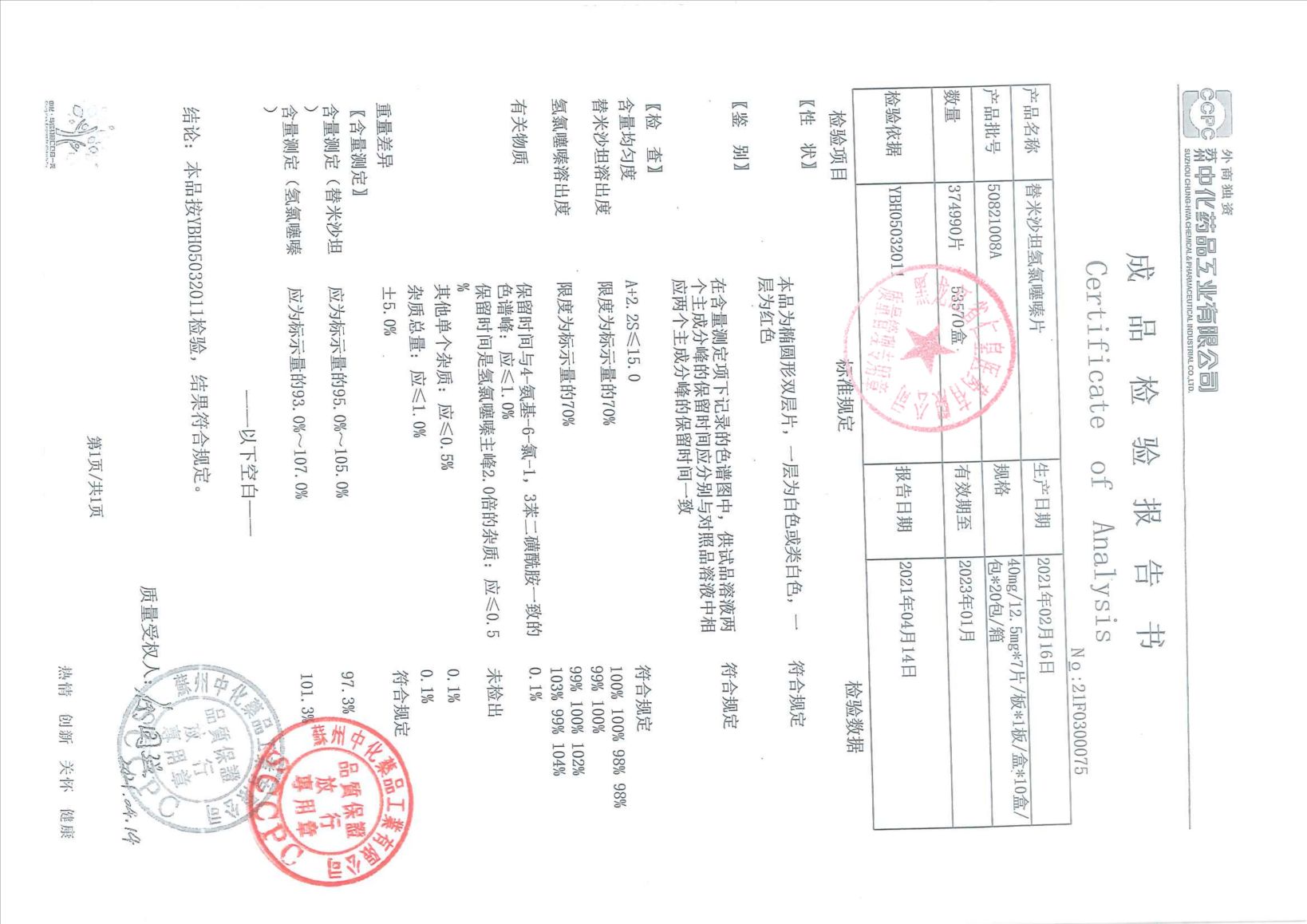 替米沙坦氢氯噻嗪片5
