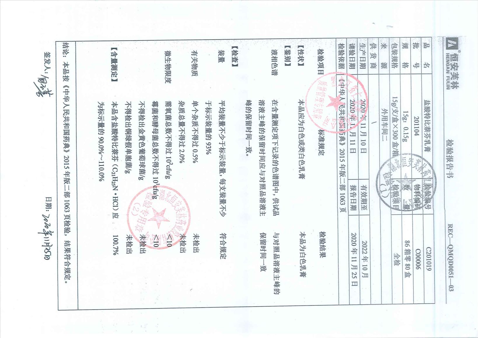 盐酸特比萘芬乳膏20