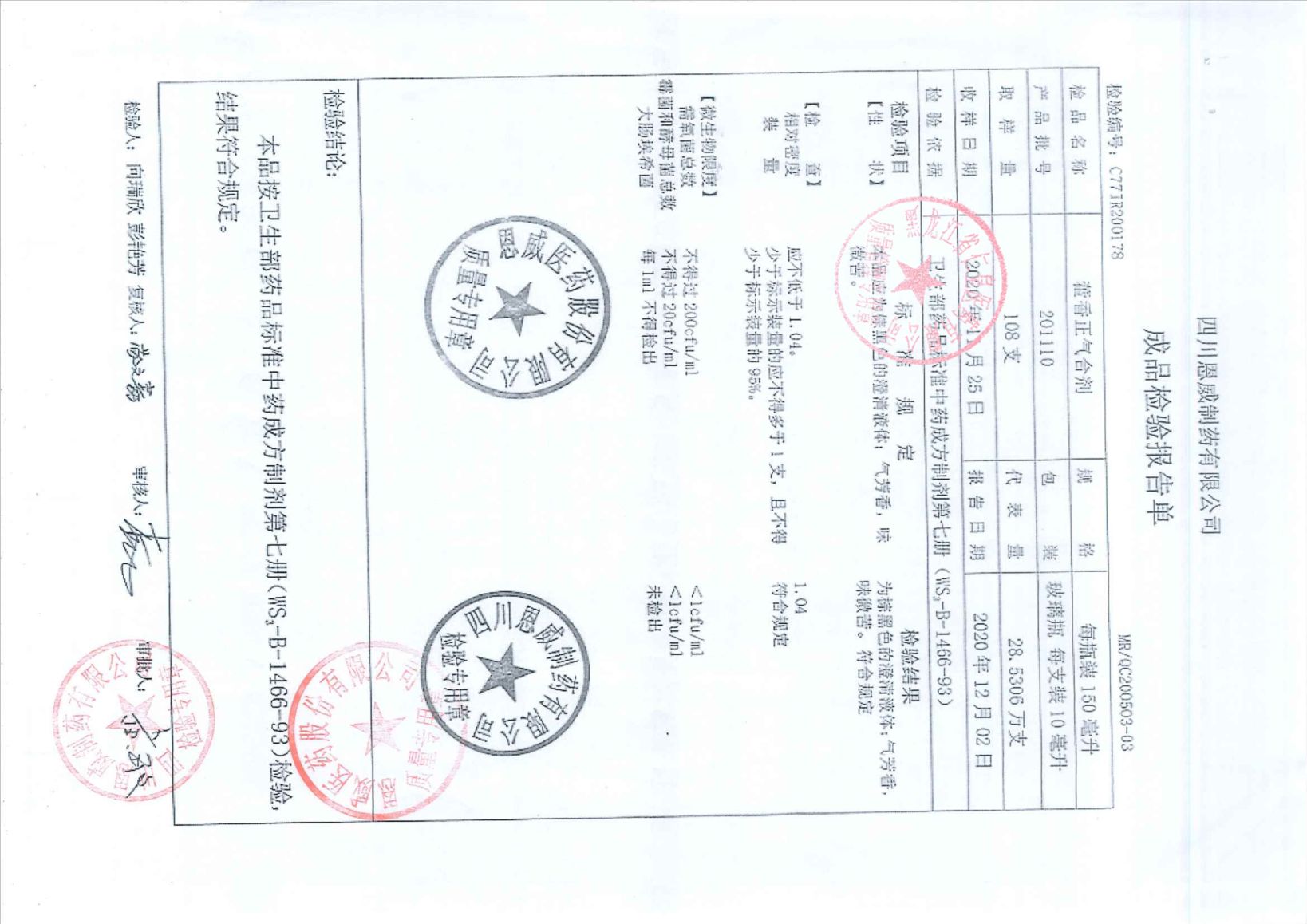 藿香正气合剂2011
