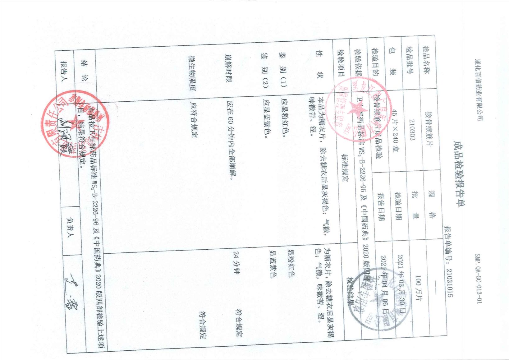 接骨续筋片21030
