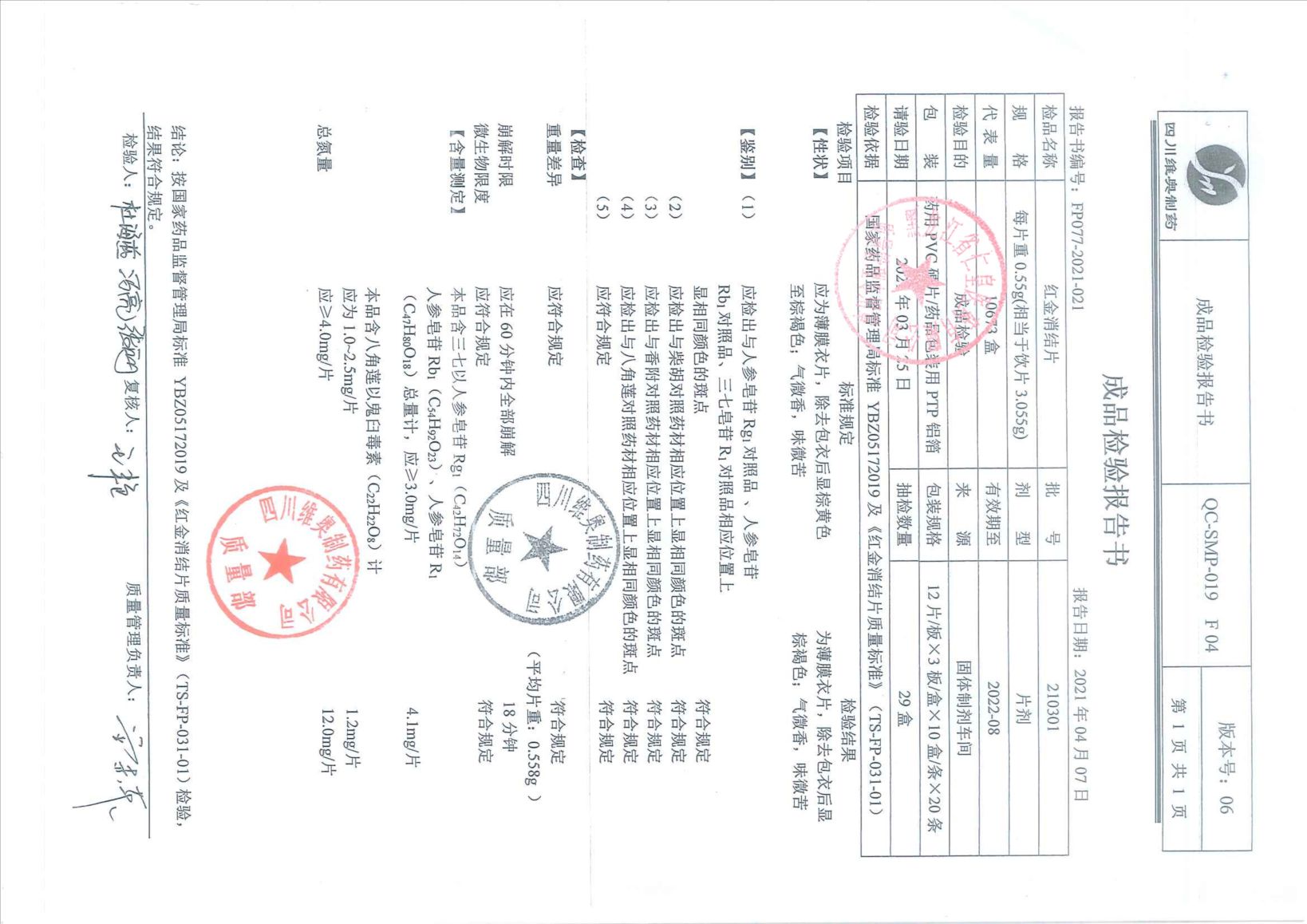 红金消结片21030