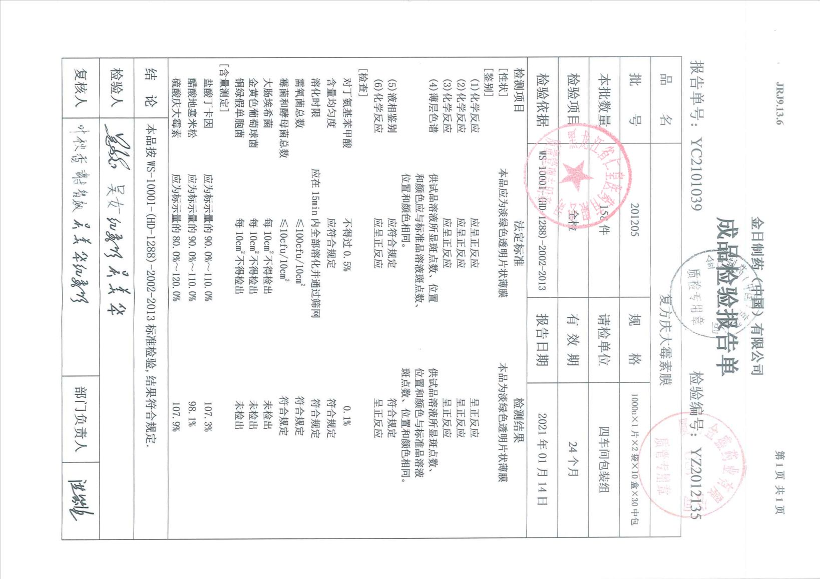 复方庆大霉素膜201