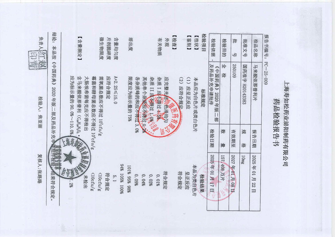 马来酸依那普利片25