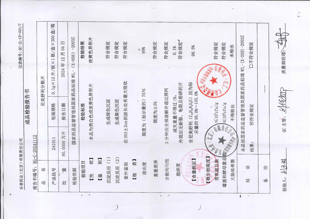 尼美舒利分散片241