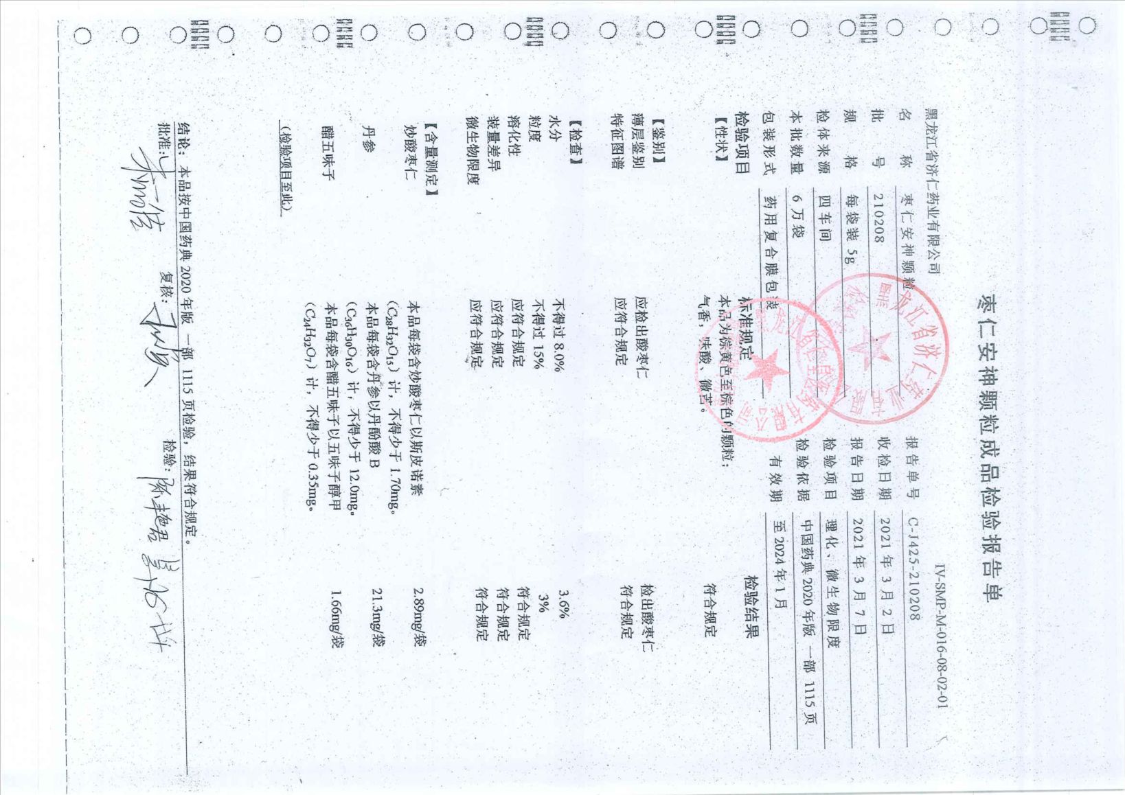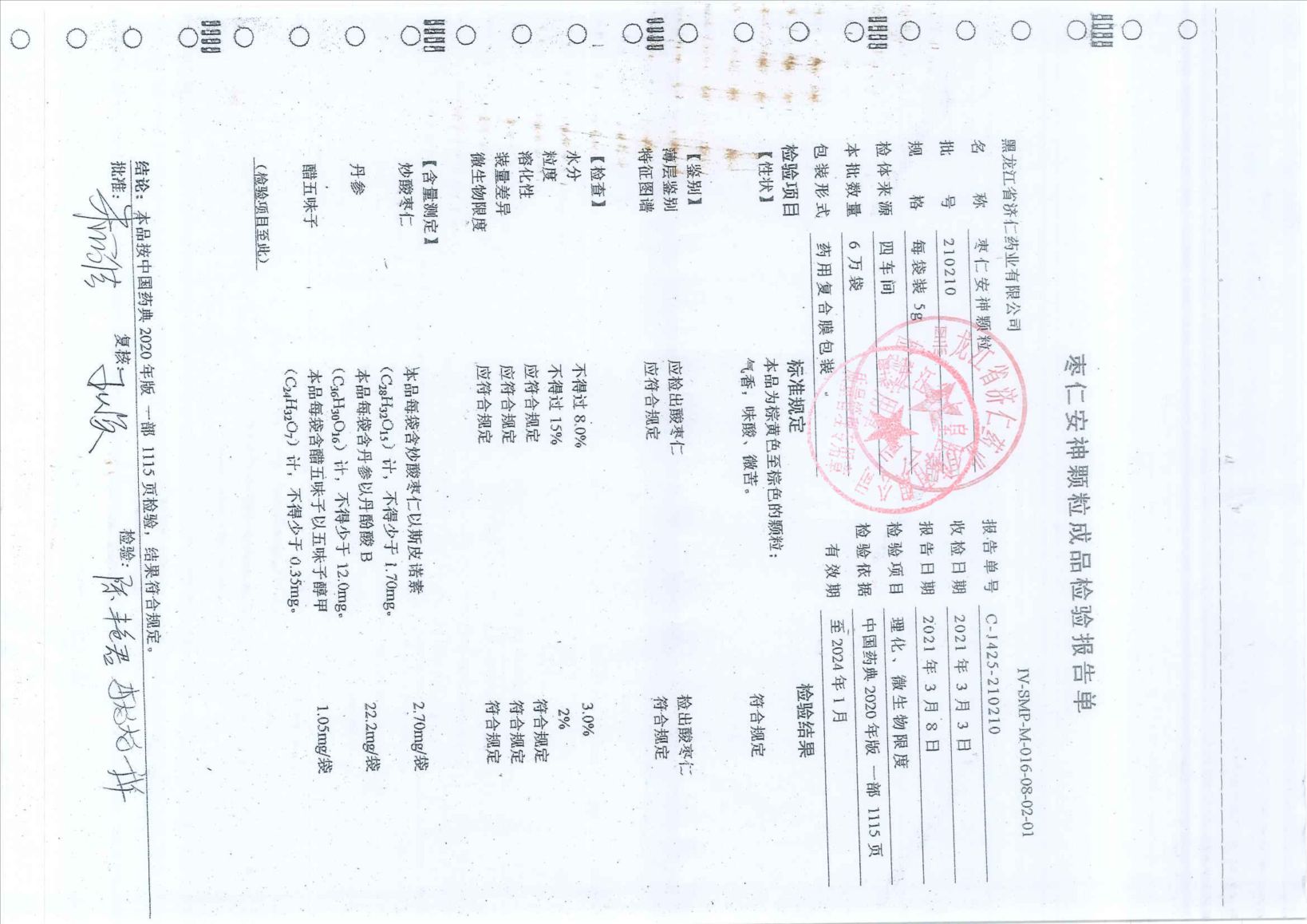 枣仁安神颗粒2102