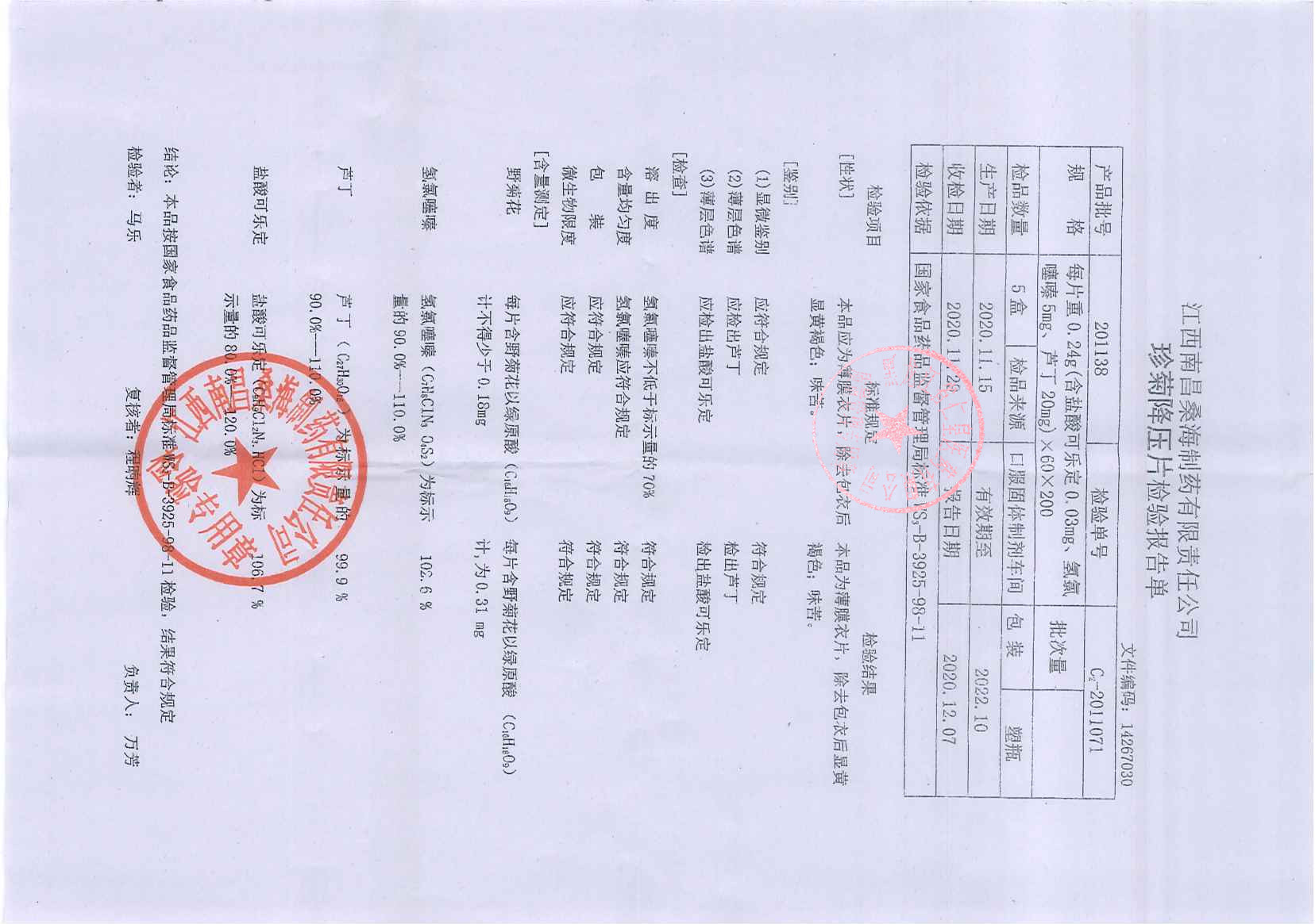 珍菊降压片20113