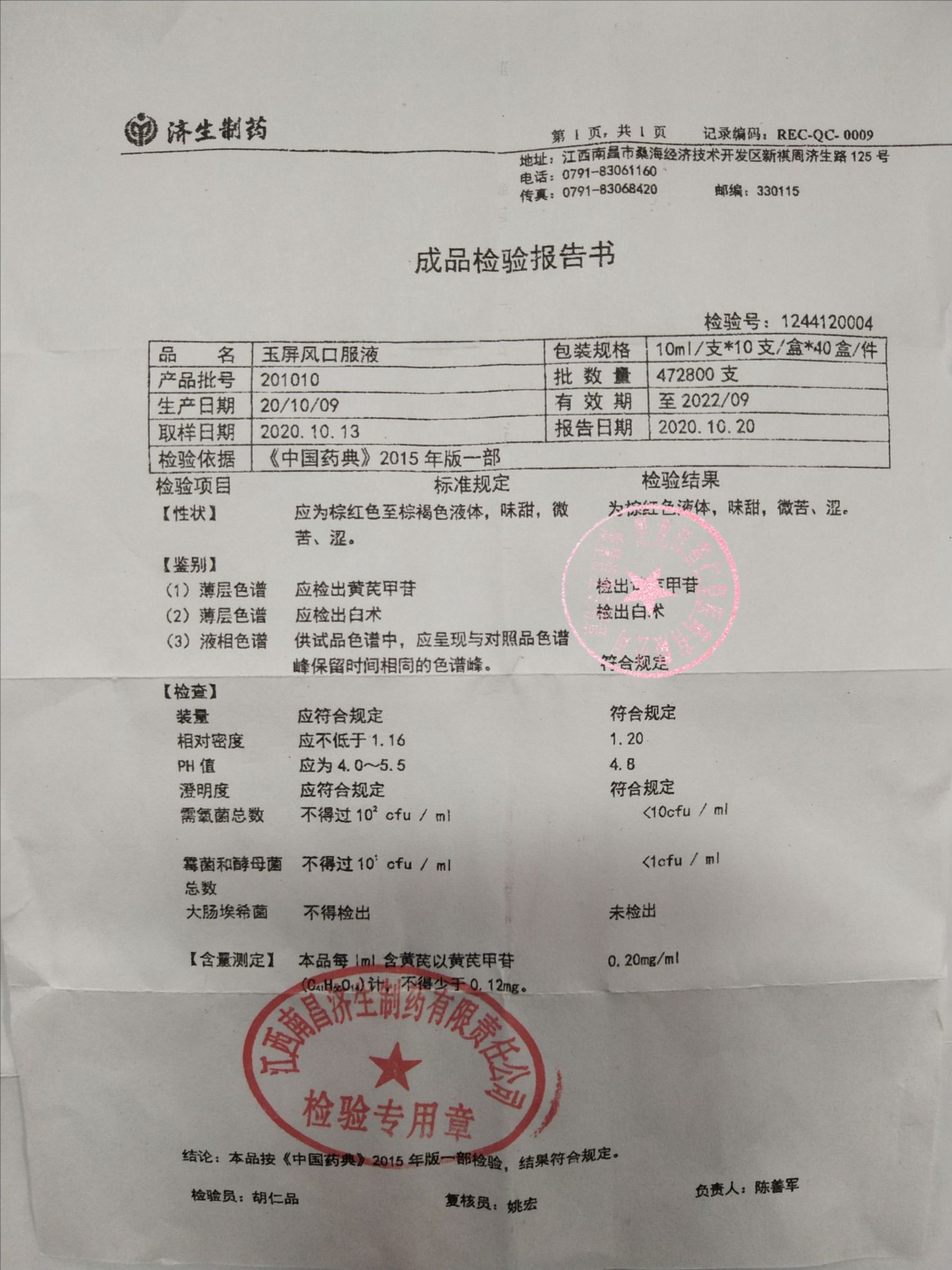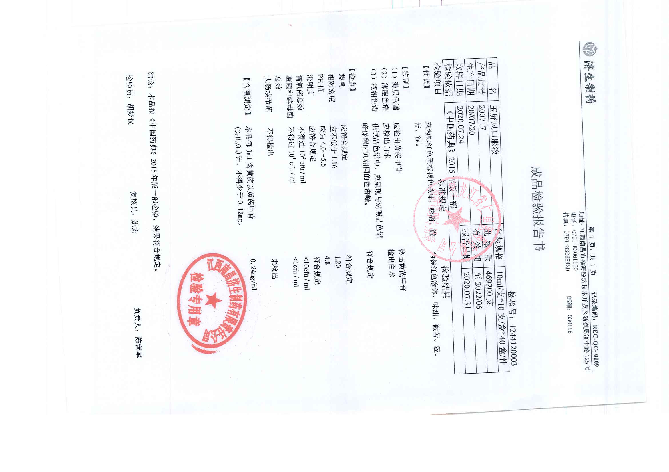 玉屏风口服液2010