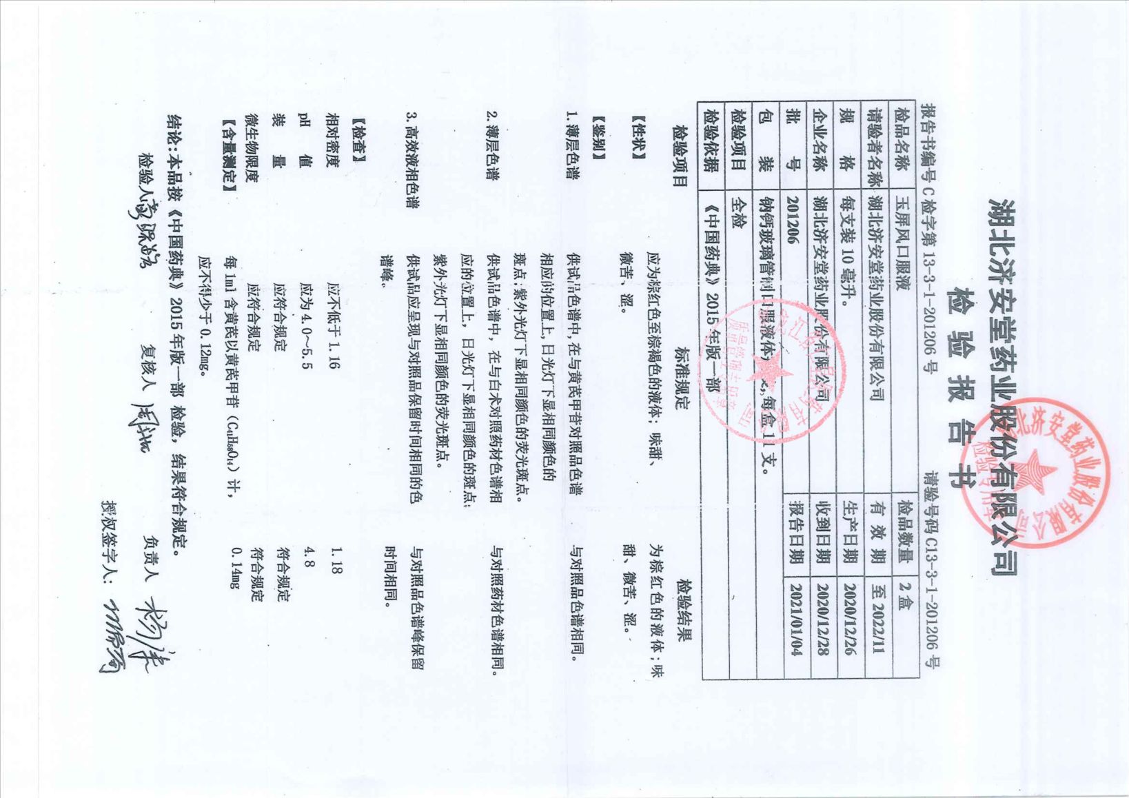 玉屏风口服液2012