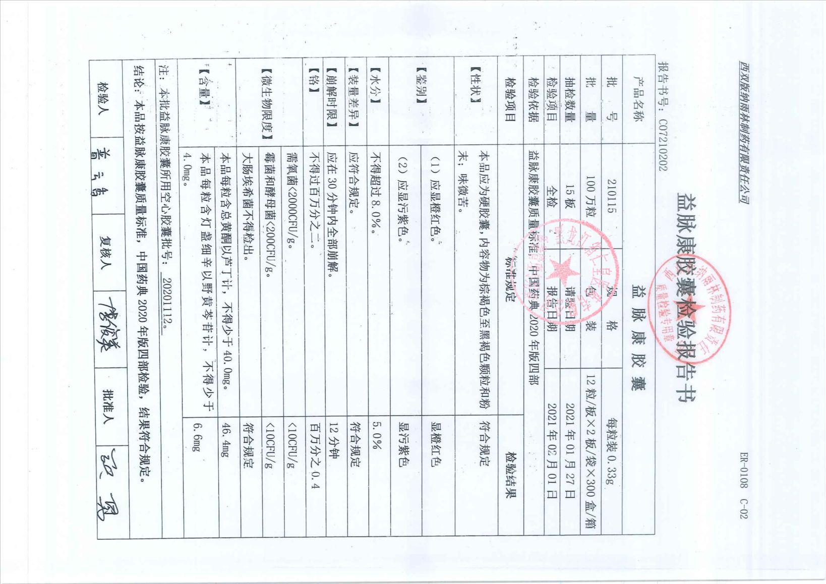 益脉康胶囊21011